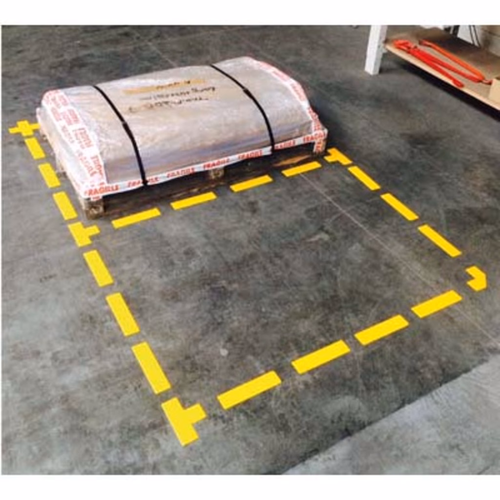 Ideati appositamente per la sicurezza delle aree di lavoro, altamente visibili e durevoli, perfetti per la delimitazione delle aree di stoccaggio, aree pedonali, uscite di fuga, ecc ecc - di veloce e più facile applicazione rispetto alla vernice tradizionale, adesivo resistente a lavaggi con acqua e con detersivi/prodotti chimici, in robusto e resistente PVC con perfetta aderenza - permette un continuo e tranquillo passaggio sia di muletti che di persone senza ingombro - si possono ottenere varie tipologie di delimitazione combinando gli elementi - disponibili in 4 colori ISO standard ad alto impatto visivo