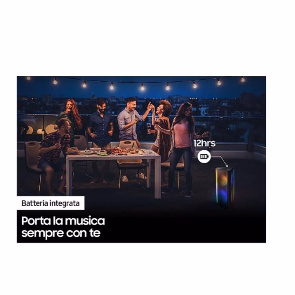 Con una durata della batteria integrata di 18 ore potrai goderti la festa ovunque tu vada.