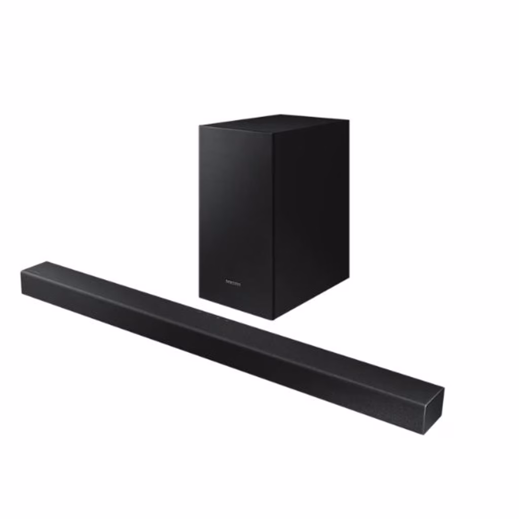 Con la soundbar a 2.1 canali e un subwoofer da 6,5 pollici, potrai immergerti in una dimensione sonora più completa, grazie all'intensità di bassi più profondi e potenti. Non hai bisogno di tanti telecomandi. Puoi controllare le funzioni principali della soundbar, come potenza, volume ed effetti sonori, direttamente dal telecomando del tuo TV Samsung. La soundbar sfrutta il Bluetooth per collegarsi facilmente agli altri dispositivi in modalità wireless. Goditi i tuoi brani musicali direttamente dal dispositivo mobile con una qualità audio eccellente senza fili.