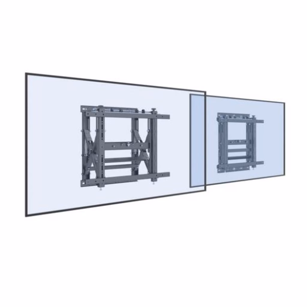 La staffa di montaggio pop-out Push-In TV è una soluzione di montaggio rapida da installare e facile da configurare. Questo è un supporto professionale incentrato su installazioni a schermo singolo o multiplo, installazione facile e veloce e manutenzione semplificata. La funzione Pop-out Push-In offre un facile accesso a qualsiasi display per una rapida manutenzione, specialmente nelle applicazioni di video wall. Questa è una delle principali funzioni necessarie per la creazione di una soluzione di montaggio a parete video o per l'integrazione di un singolo schermo nella parete.