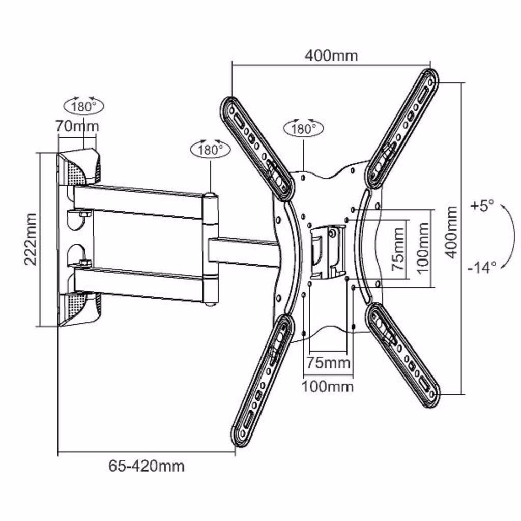 La staffa di montaggio a parete per equipaggiare TV è un prodotto compatto ma robusto che garantisce un'installazione affidabile della tua TV LCD / Plasma. Segui la guida grafica inclusa nella confezione, puoi installare la tua TV da solo con facilità. Il supporto da parete si adatta alla maggior parte dei materiali per pareti: mattoni, cemento e legno, rendendoti la scelta ideale per impostare i tuoi schermi.