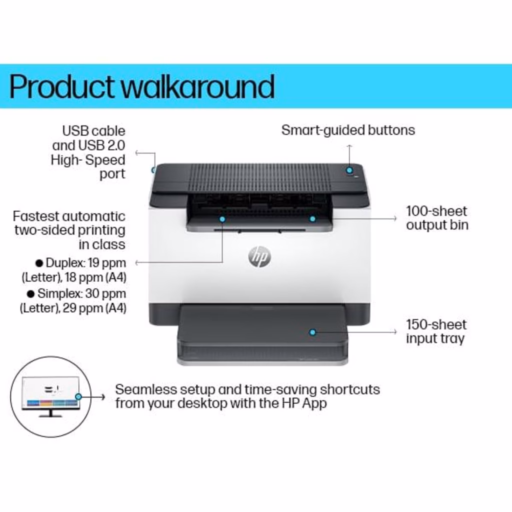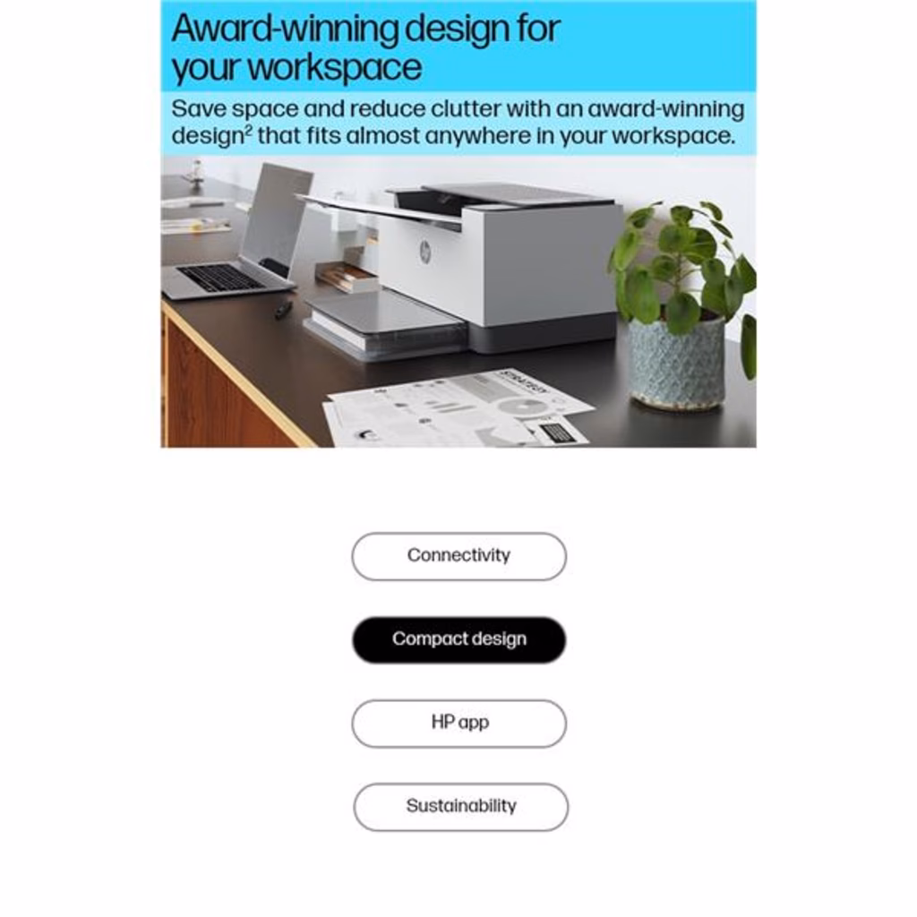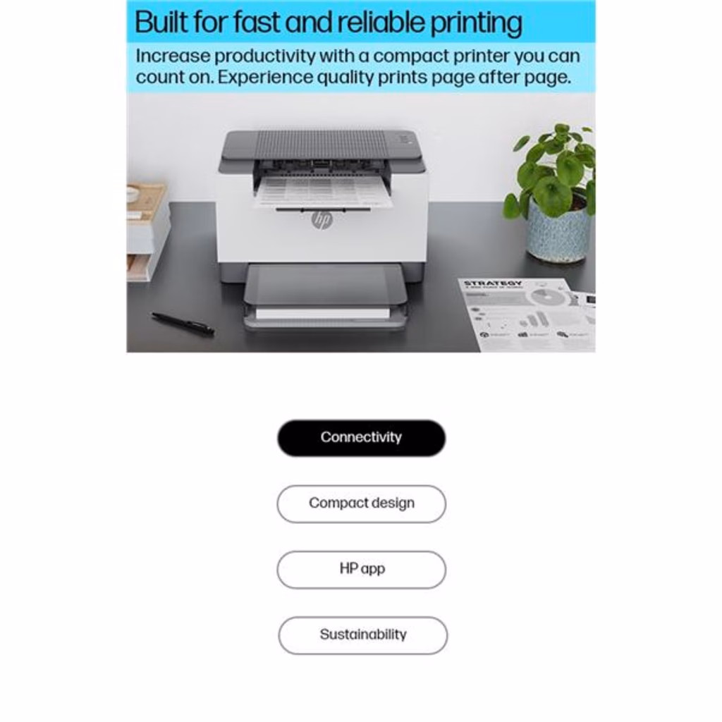 Aumenta la produttività grazie a una stampante monocromatica compatta,che ti offre: stampa fronte/retro rapida, funzionalità configurazione semplificata e anche Scorciatoie per risparmiare tempo con l'app HP Smart.