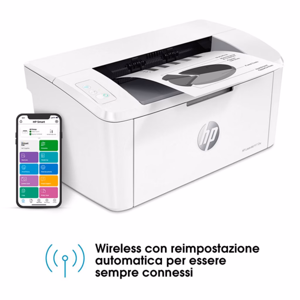 Una stampante laser efficiente, adatta a ogni esigenza di spazio e budget. Risparmiate tempo grazie alle elevate velocità di stampa della stampante laser più piccola della sua categoria e alle funzionalità dell'app HP Smart. Potrete contare su stampe di qualità professionale e semplicità di configurazione.