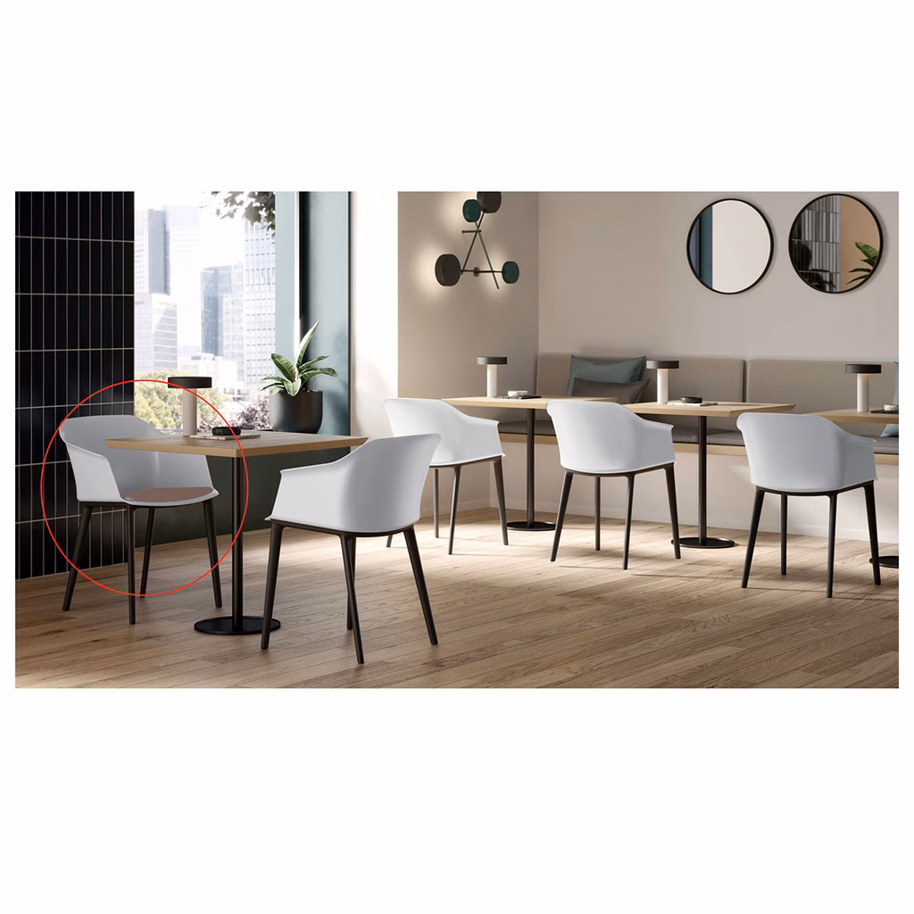 Sedia community in plolipropilene proposta in colori moda dal carattere brioso e per ogni ambientazione. Monoscocca in polipropilene con trattamento anti UV. Proposta con 4 gambe in plastica oppure nella versione con gambe in legno. Tramite supplemento richiedibile con inserto sedile imbottito e rivestito in ecopelle o tessuto, oppure totalmente rivestita in tessuto. Rivestimenti: tessuto ignifugo Mirage (test usura 100.000 cicli Martindale) oppure ecopelle Happy (test usura 50.000 cicli Martindale).