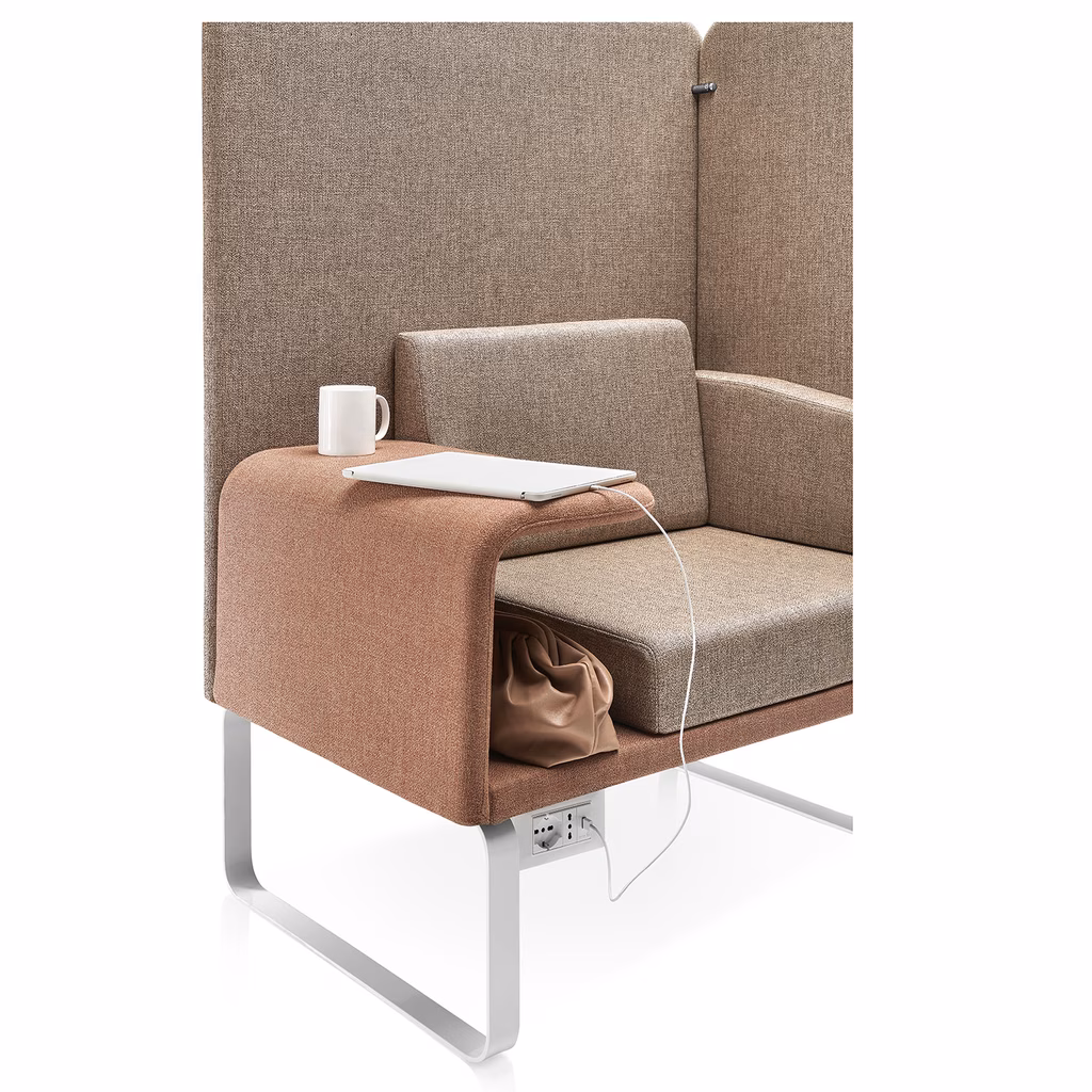 CUBIX è una poltrona dalla forte personalità che crea uno spazio raccolto e discreto, consentendo di isolarsi dal contesto circostante grazie ai suoi pannelli fonoassorbenti. Il design semplice rende tuttavia Cubix funzionale, rispondendo al bisogno di riservatezza e al contempo di comodità, con una tavoletta imbottita e un vano porta oggetti. La struttura in tubo dacciaio e il sedile in spugna ad alto spessore rendono Cubix estremamente resistente. STRUTTURA: in tubo dacciaio Ø20 spessore 2, imbottito di poliuretano schiumato a freddo e con pannelli fonoisolanti, rivestito in tessuto. SCHIENALE: contiene un pannello di fibra riciclata in tessile tecnico di poliestere a densità crescente lungo lo spessore, dalle elevate prestazioni termiche e acustiche. Di durata illimitata, atossico, ecologico. Completo di cuscino in spugna rivestito. PANNELLO FONOISOLANTE: in fibra riciclata in tessile tecnico di poliestere a densità crescente, sp. 25 mm. SEDILE: Cuscino in spugna alto spessore (55 mm) rivestito in tessuto. BASE: in trafilato dacciaio 45x6, finitura cromata (15m) o verniciata a polveri. TAVOLINO: Pannello in tubo dacciaio Ø20 spessore 2, imbottito di poliuretano schiumato a freddo, rivestito in tessuto. RIVESTIMENTI: richiedibile in tutti i tessuti della categoria D, richiedere cartelle complete e scegliere abbinamenti colori possibili tra schienali, tavolino e cuscini/sedile. OPZIONALE: scatola elettrica con presa 2P+T 16A universale e alimentatore USB A+C 5V 3A. CONSEGNATO GIA' ASSEMBLATO
