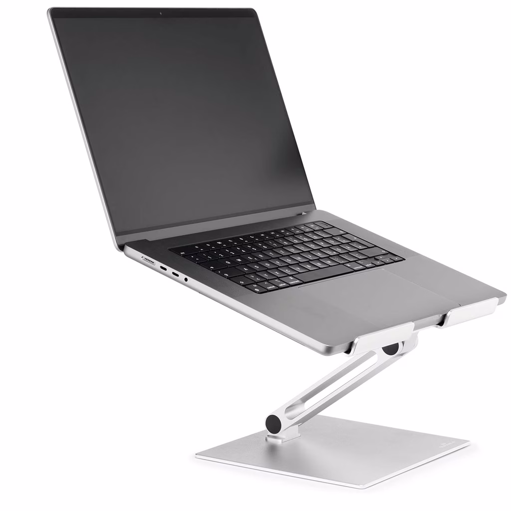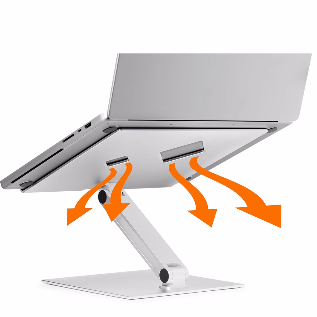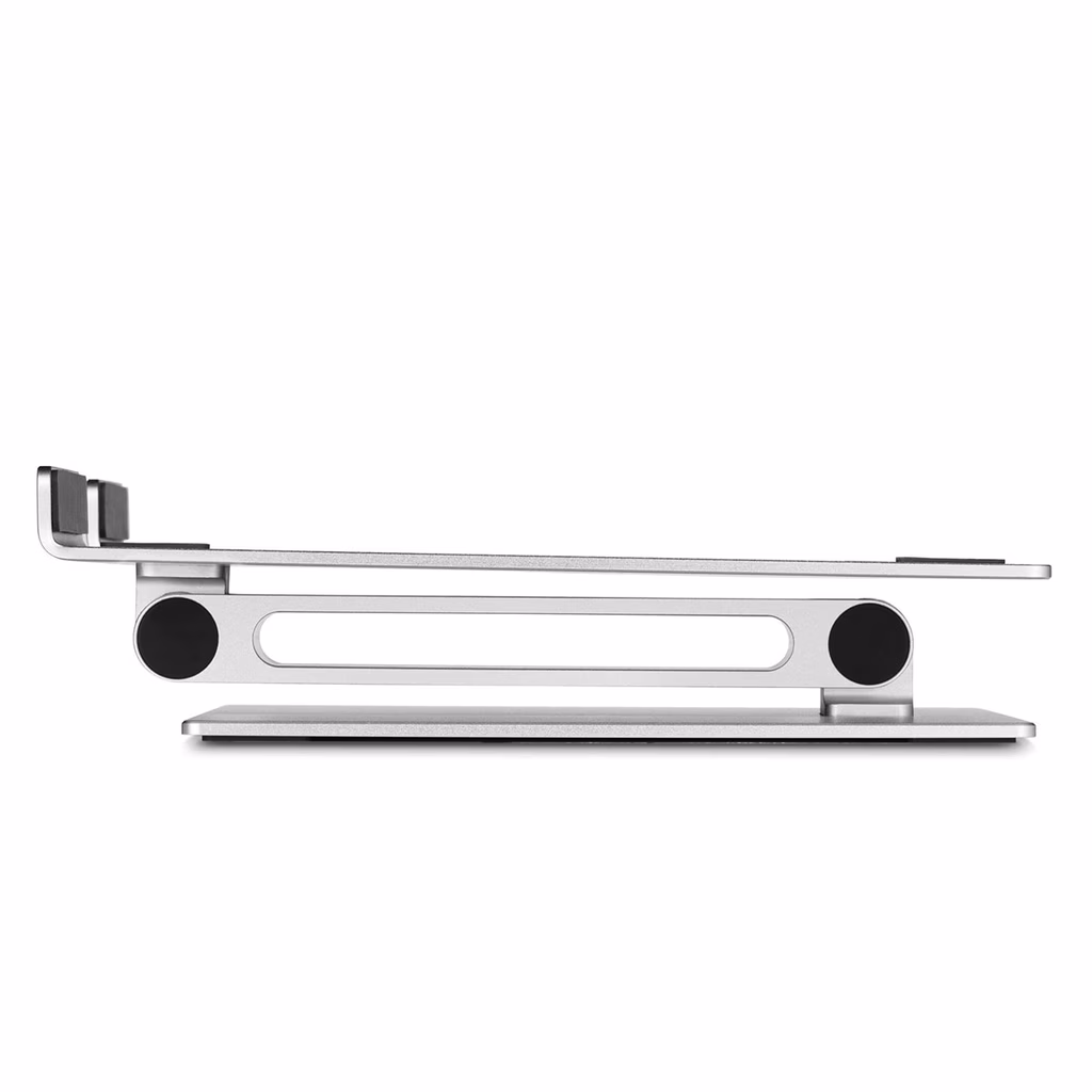 Supporto da tavolo universale, regolabile per computer portatili e tablet da 10" a 17" - L'altezza e l'angolo di lettura regolabili permettono di lavorare in modo ergonomico - Consente di utilizzare i computer portatili come schermo da scrivania (in combinazione con tastiera e mouse aggiuntivi) - Elevata stabilità per lavorare in sicurezza - I gommini antiscivolo proteggono il dispositivo dai graffi - Salvaspazio, pieghevole e facile da spostare - Ottima dissipazione del calore grazie ai fori di ventilazione e alla base in alluminio - Ampia fessura frontale per facilitare l'apertura e la chiusura del computer portatile - Estremamente robusto, realizzato in alluminio da 3,5 mm di spessore per supportare i computer portatili in modo sicuro e affidabile - Fai spazio e ordine sulla scrivania