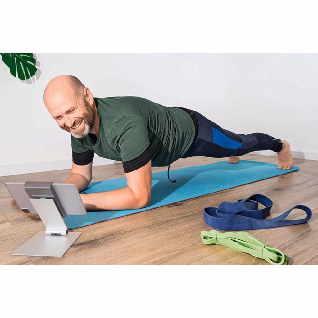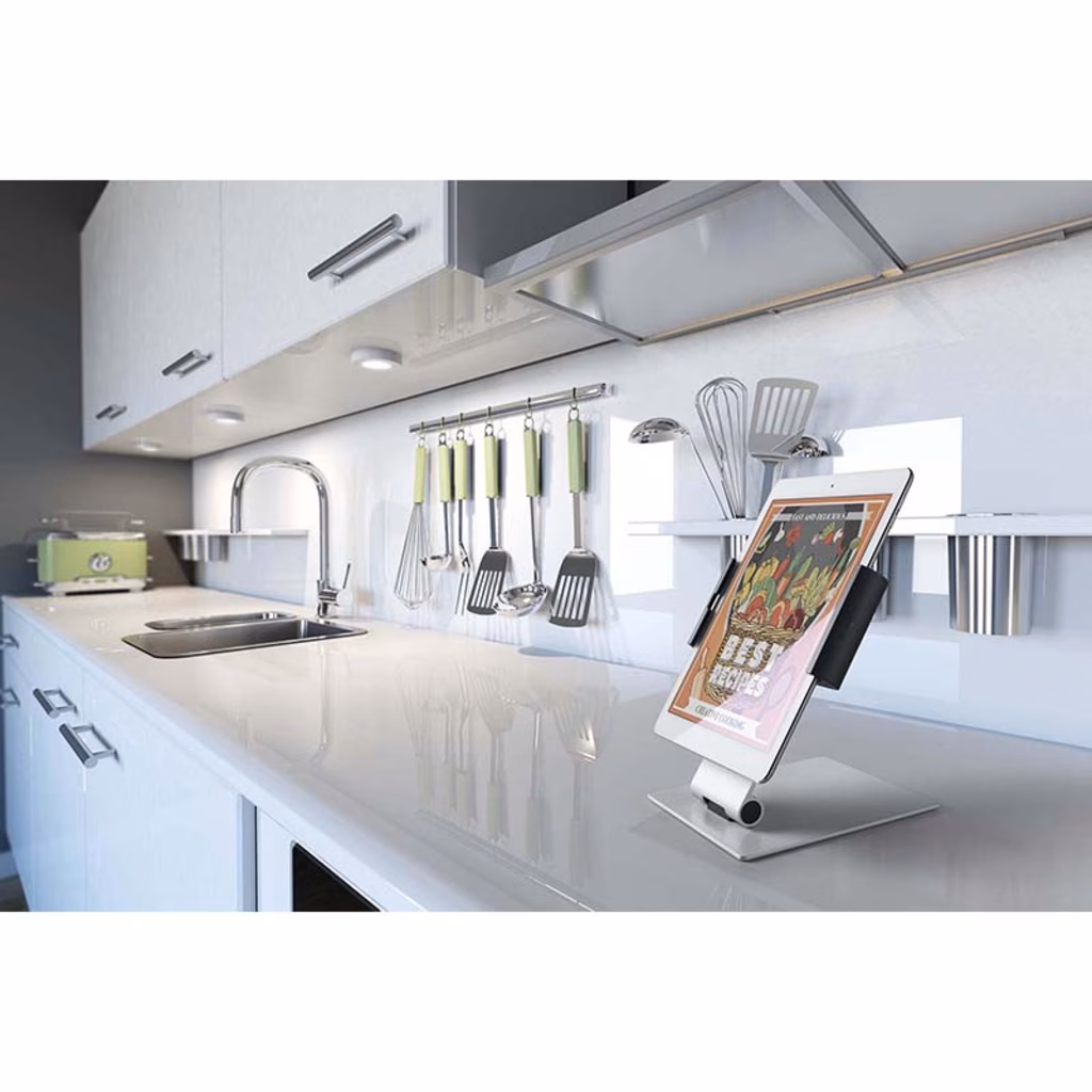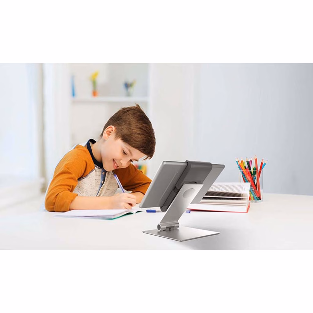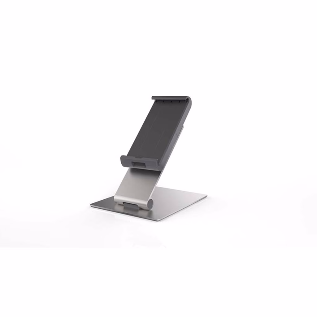Supporto tablet realizzato in materiali e finiture di altissima qualità - inserimento e rimozione del tablet con una sola mano - posizionabile in orizzontale o verticale - ergonomia assicurata dallampio angolo di visualizzazione - robusto e stabile, con dispositivo antifurto tramite foro per cavo di sicurezza kss - sistema di cablaggio integrato internamente per non averli a vista - cavo usb incluso - design elegante e moderno, adatto ad ambienti formali - colore argento metalizzato . adatto per tablet da 7" a 13" - orientabile a 360° - predisposto cavo sicurezza