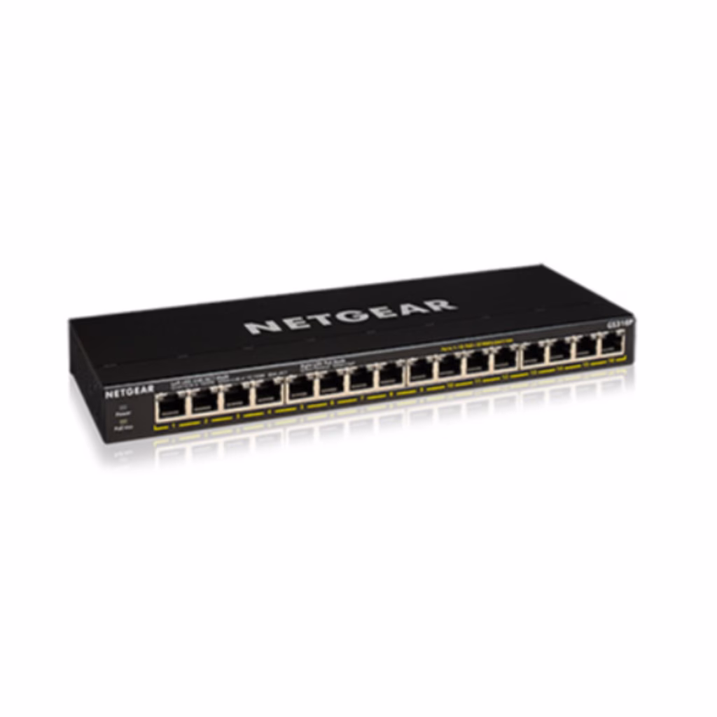 NETGEAR GS316P Switch PoE + non gestito con 16 porte Gigabit Ethernet, 115 W PoE + Budget, Fanless, Plug-and-Play - Budget PoE aggiornabile con NETGEAR FlexPoE.