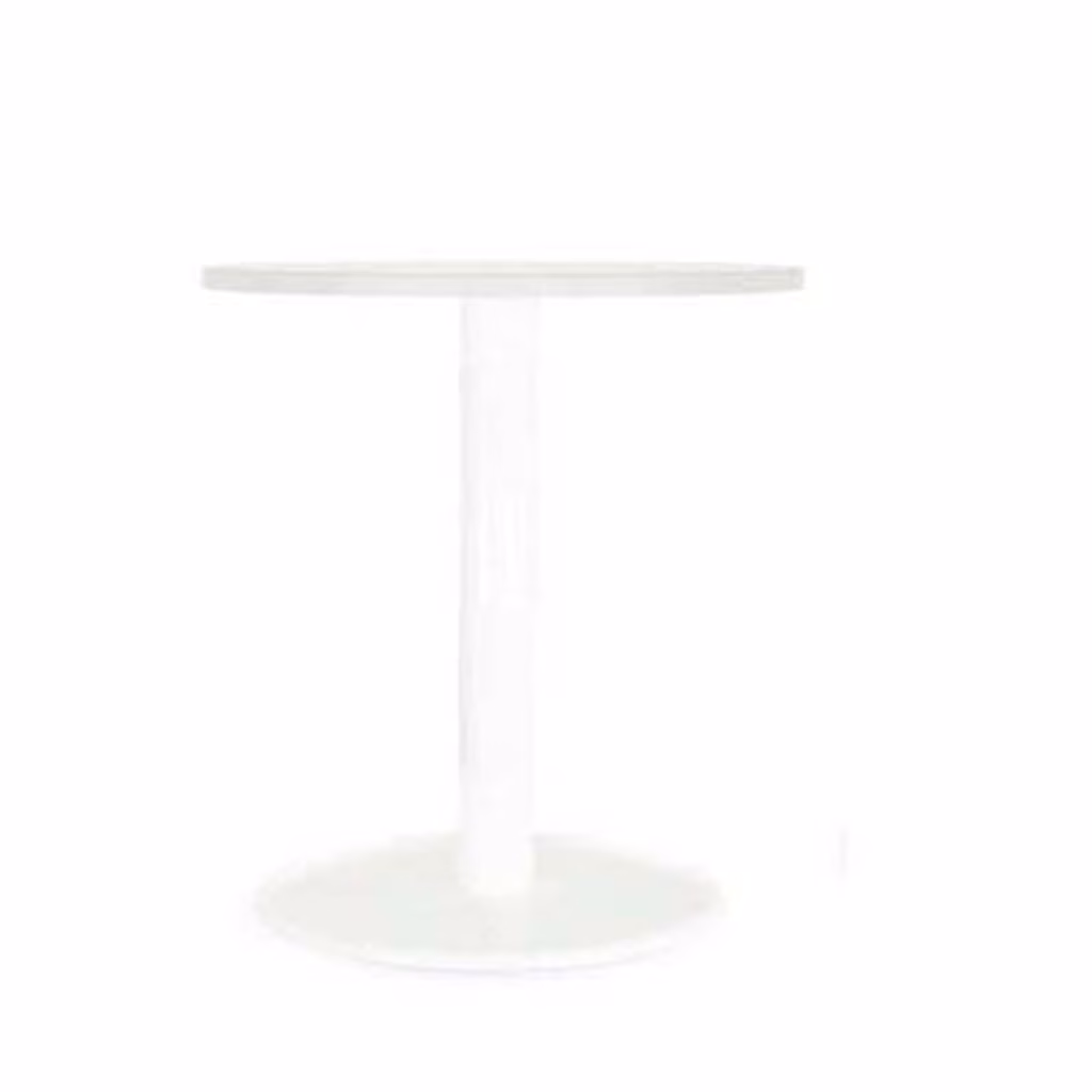 Piano circolare in agglomerato ligneo nobilitato melaminico bianco, colonna (Ø 8cm) e base (Ø 49cm) in metallo verniciato bianco - Altezza 75 cm.