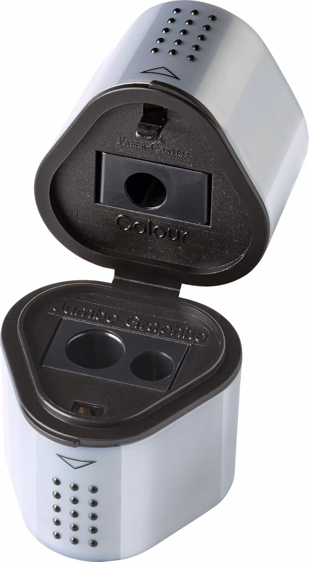 Temperamatite di qualità 3 in 1. Ideale per matite di grafite e colorate. Per tutte le forme di matite in commercio: Standard e Jumbo. Il classico design Grip ha preso piede con successo anche nel mondo degli affilatori. La popolare forma triangolare con i punti Grip dots è ben nota e promette un'eccellente ergonomia.