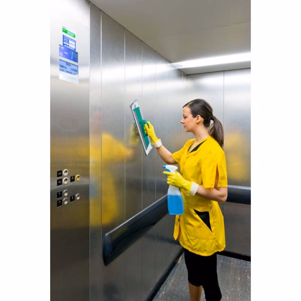 Attrezzo rivoluzionario per la pulizia dei vetri - dotato di impugnatura ergonomica - in un terzo del tempo, la superficie viene pulita ed asciugata senza lasciare tracce e aloni