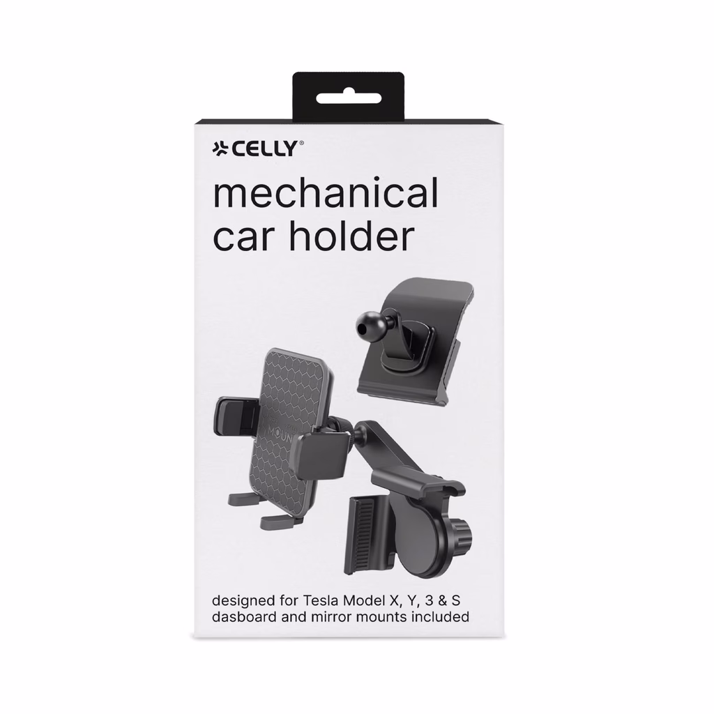 Offre la massima flessibilità di utilizzo grazie al suo sistema di fissaggio intercambiabile che prevede una clip che si aggancia al cruscotto e un sistema di aggancio all'iconico monitor Tesla.