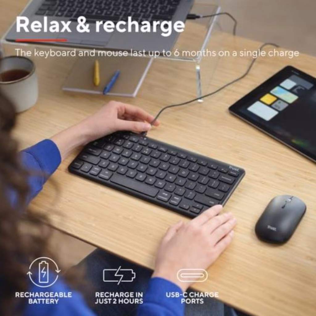 TRUST KIT DESKSET TASTIERA E MOUSE WIRELESS RICARICABILI 24844