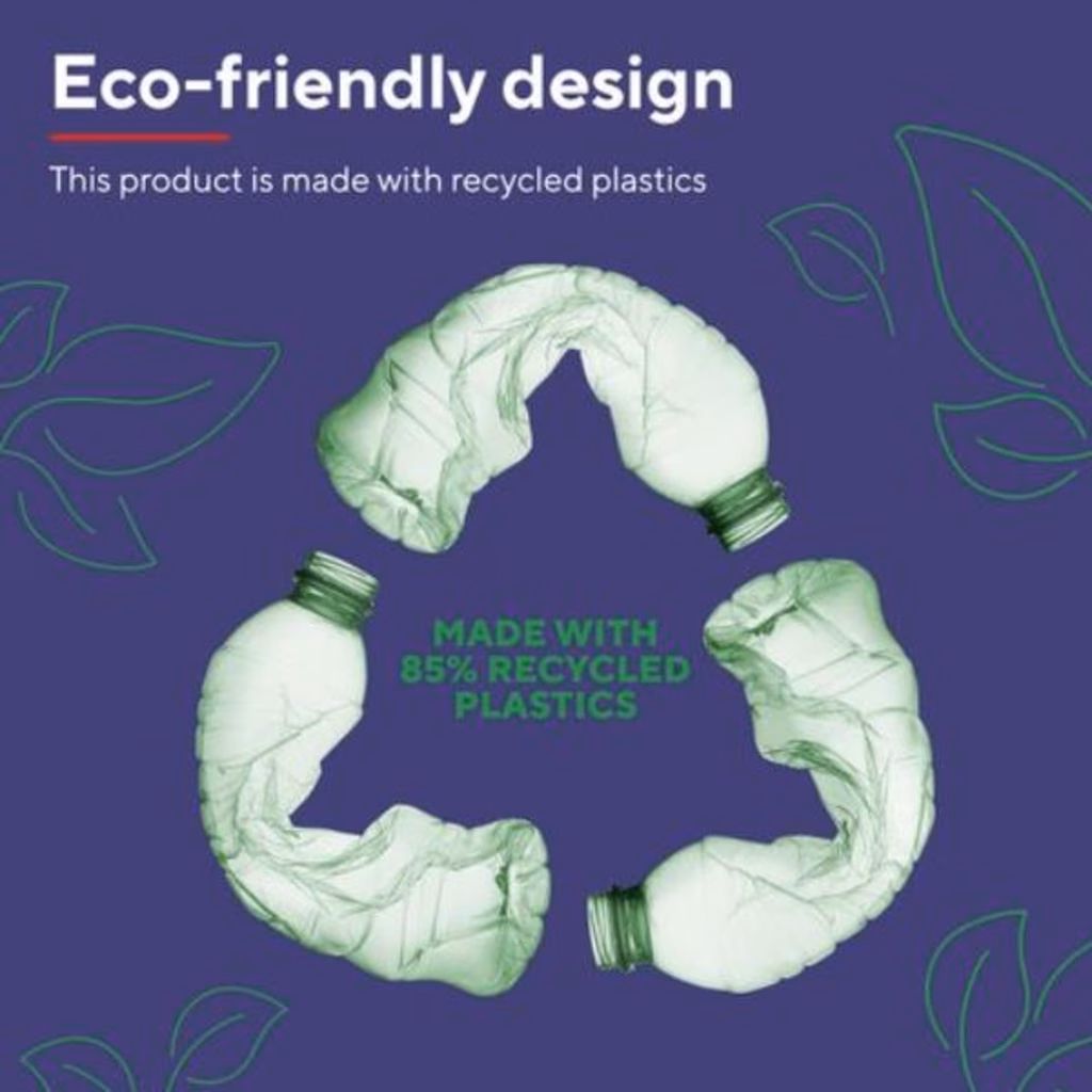 Lavora in modo più sostenibile grazie a Lyra. Prodotto all 84in plastica riciclata e confezionato in un imballo al 100% senza plastica, il set tastiera e mouse Lyra può essere nero fuori... ma verde dentro.