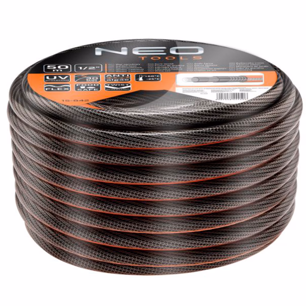 Tubo da giardino NEO PROFESSIONAL 1/2" 50 metri antitorsione 6 strati max 30 bar nero/arancione