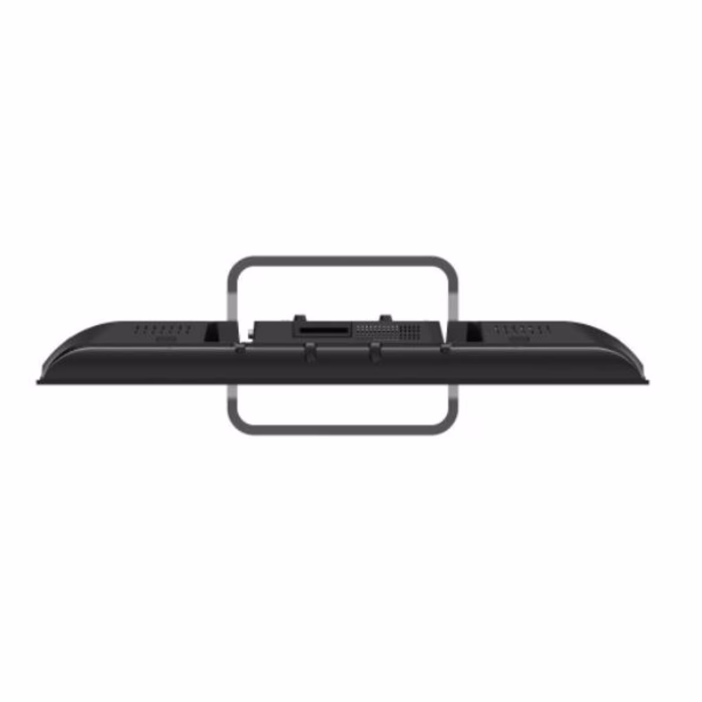 Con il suo supporto metallico a U e la compatibilità VESA 100×100 mm, può essere appoggiato o montato a parete. Le dimensioni sono 72 cm × 46 cm con piedistallo, e il profilo è sottile (meno di 9 cm).