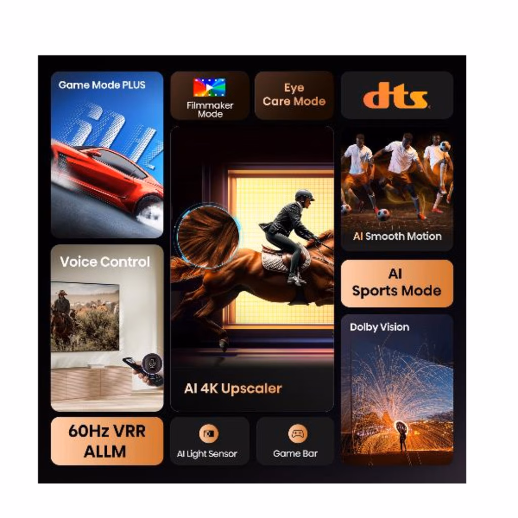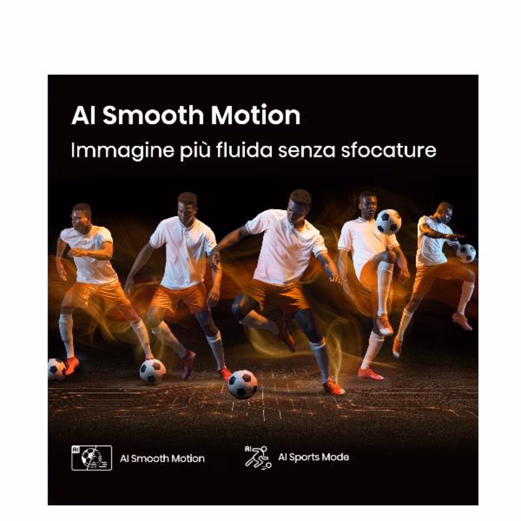 Sperimenta immagini fluide e realistiche con funzionalità avanzate come MEMC (Motion Estimation, Motion Compensation) e 3D Noise Reduction, integrate in un pannello altamente reattivo. Con la tecnologia AI Smooth Motion, il fastidioso motion blur appartiene al passato. Che si tratti di sport frenetici o di giochi ricchi di azione, ogni movimento e svolta improvvisa viene reso con nitidezza, assicurando che le scene dinamiche appaiano fluide e realistiche.