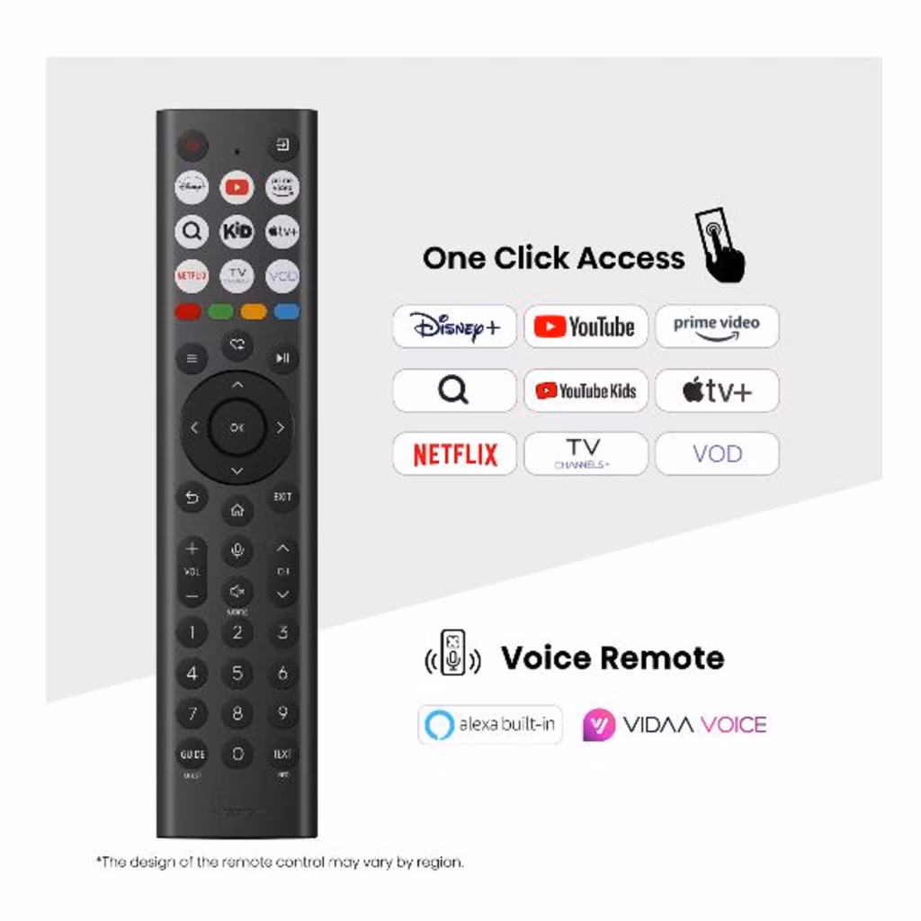 Prova il telecomando vocale Hisense e porta il controllo della TV a un livello superiore di comodità. Premendo un solo pulsante si attivano i comandi vocali. Naviga facilmente tra i programmi, regola il volume o interagisci con gli assistenti virtuali.