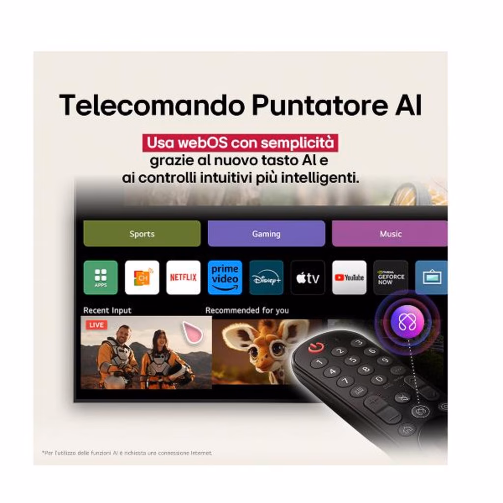 Il rivoluzionario Telecomando Puntatore AI porta l'interazione con il tuo dispositivo a un livello superiore grazie alla presenza del nuovo tasto AI, che semplifica e accelera l'accesso alle funzioni più avanzate. Oltre ai comandi vocali, che permettono un controllo ancora più intuitivo, il telecomando offre anche la funzionalità drag & drop, che consente di navigare e spostare contenuti più facilmente.