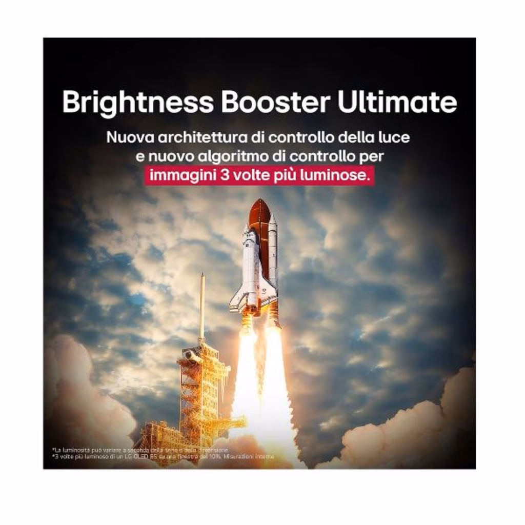 Il Brightness Booster Ultimate aumenta la luminosità dello schermo fino fino a tre volte rispetto a uno schermo LG OLED tradizionale. Queste prestazione incredibili sono rese possibili dalla tecnologia innovativa di LG, che ottimizza la gestione della luce per garantire immagini più brillanti, vivaci e nitide, anche in ambienti luminosi. Grazie a questa tecnologia avanzata, ogni dettaglio prende vita, offrendo un'esperienza visiva senza compromessi.