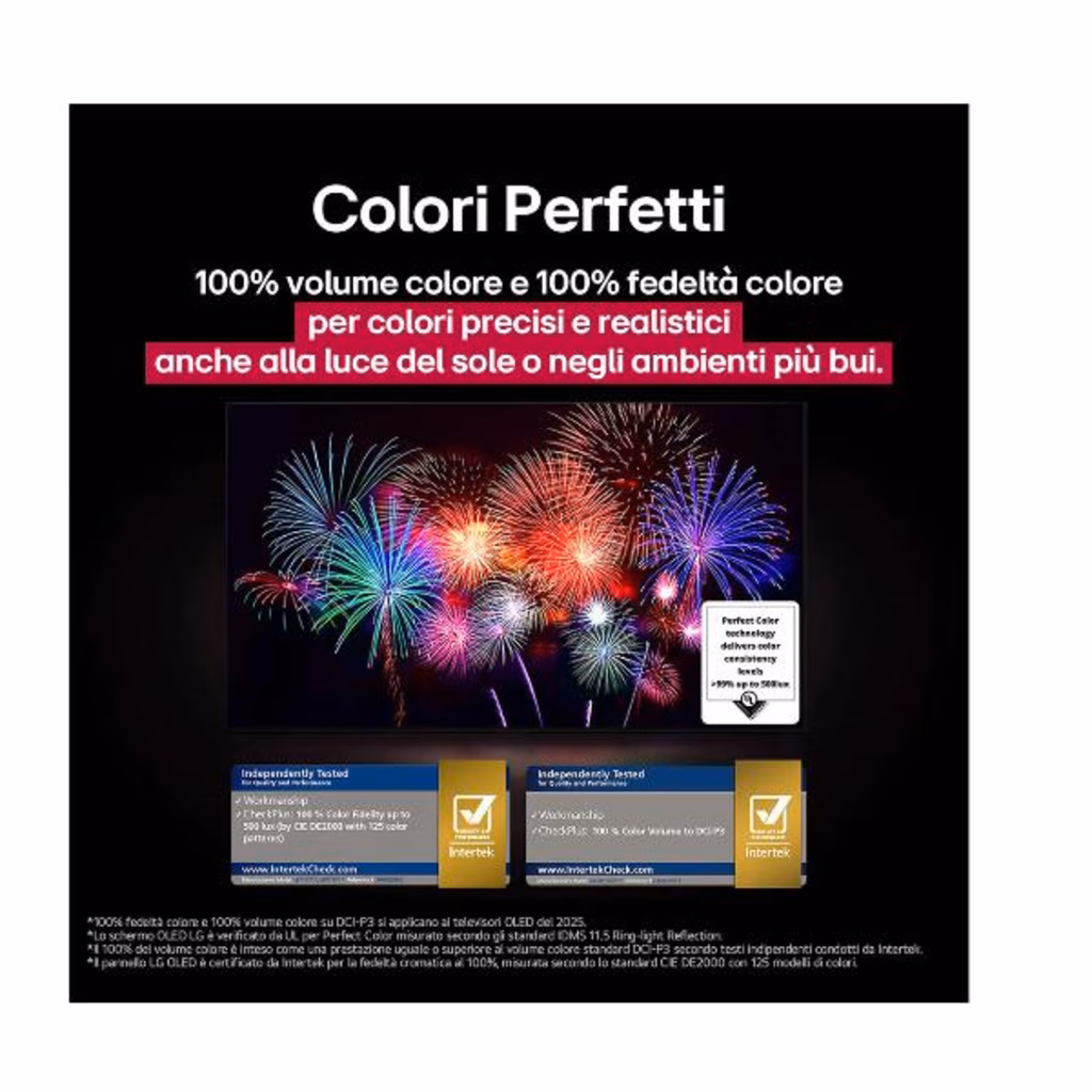 Questo TV è stato certificato da Intertek perché assicura una fedeltà cromatica al 100%, riproducendo colori realistici e autentici in ogni scenam, mantenendo intatti i dettagli originali. Inoltre, il volume colore al 100% consente di ottenere sfumature più ricche e intense, che donano profondità e vivacità, arricchendo ulteriormente l'esperienza visiva.