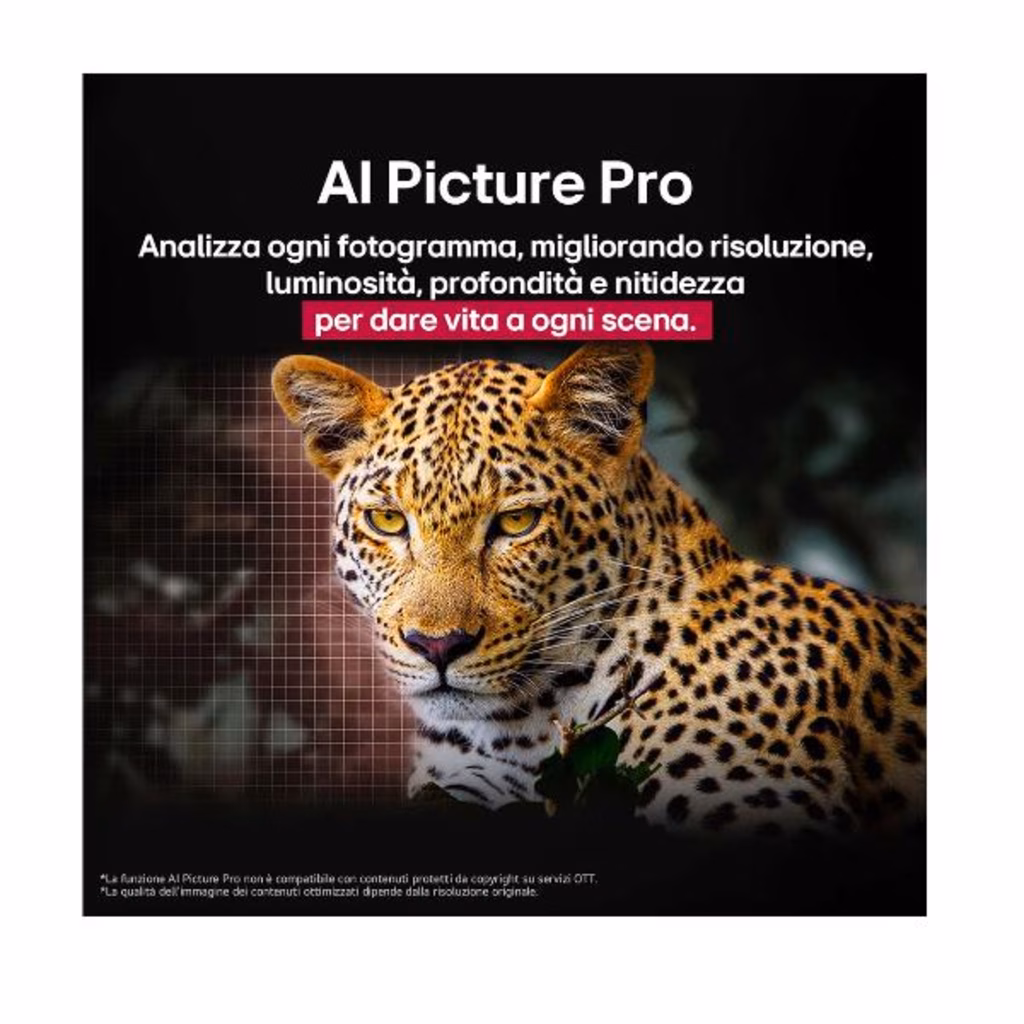 Il nuovo processore a11 gen2 con AI offre un'esperienza visiva straordinaria con qualità d'immagine 4K, arricchita da dettagli ottimizzati tramite l'Intelligenza Artificiale, che analizza in tempo reale ogni scena per esaltare la nitidezza e la profondità. Inoltre, grazie alla potenza del processore a11 gen2 con AI, il suono diventa altrettanto coinvolgente, garantendo un audio surround immersivo che completa perfettamente la visione, portando il tuo intrattenimento a un livello superiore.