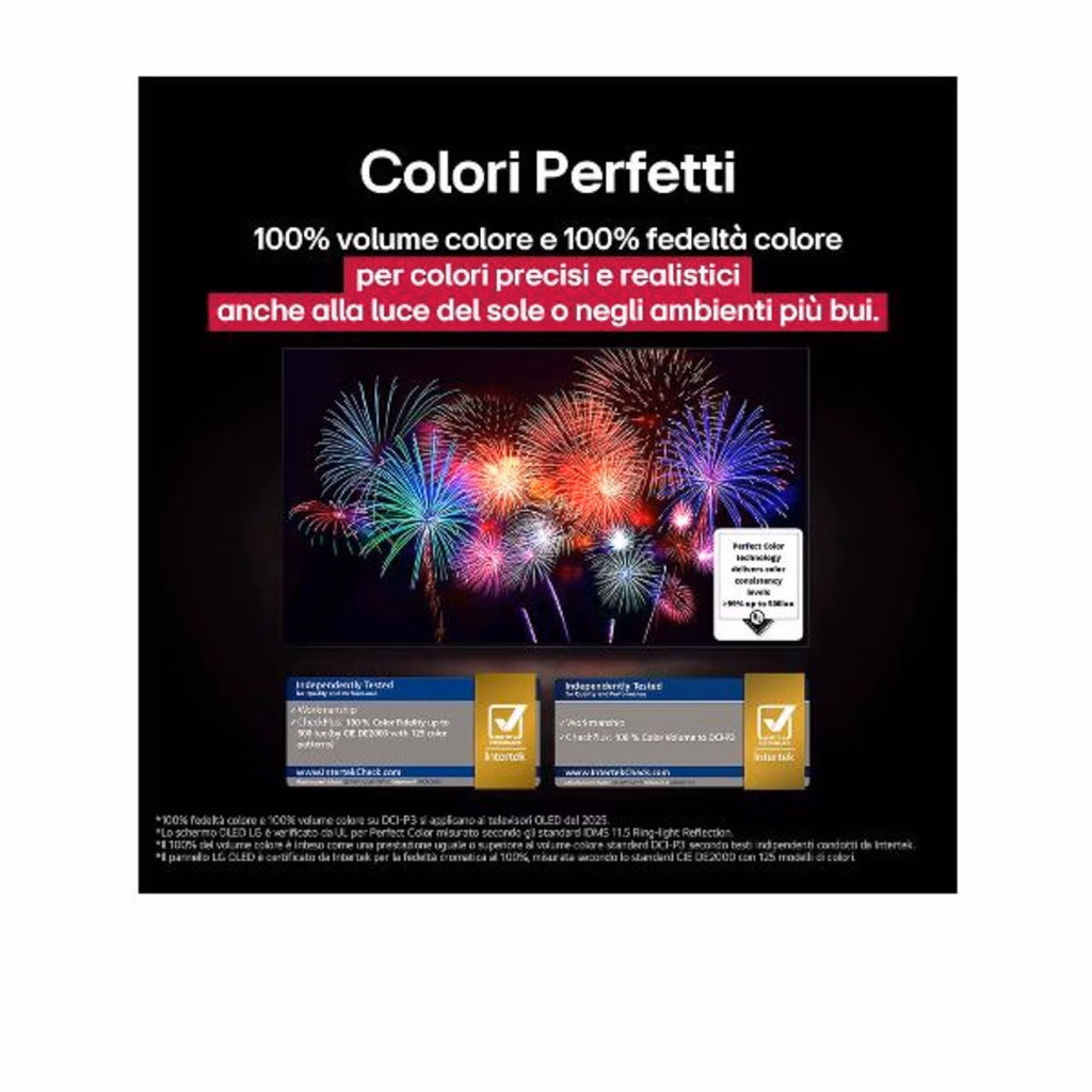 Questo TV è stato certificato da Intertek perché assicura una fedeltà cromatica al 100%, riproducendo colori realistici e autentici in ogni scenam, mantenendo intatti i dettagli originali. Inoltre, il volume colore al 100% consente di ottenere sfumature più ricche e intense, che donano profondità e vivacità, arricchendo ulteriormente l'esperienza visiva.