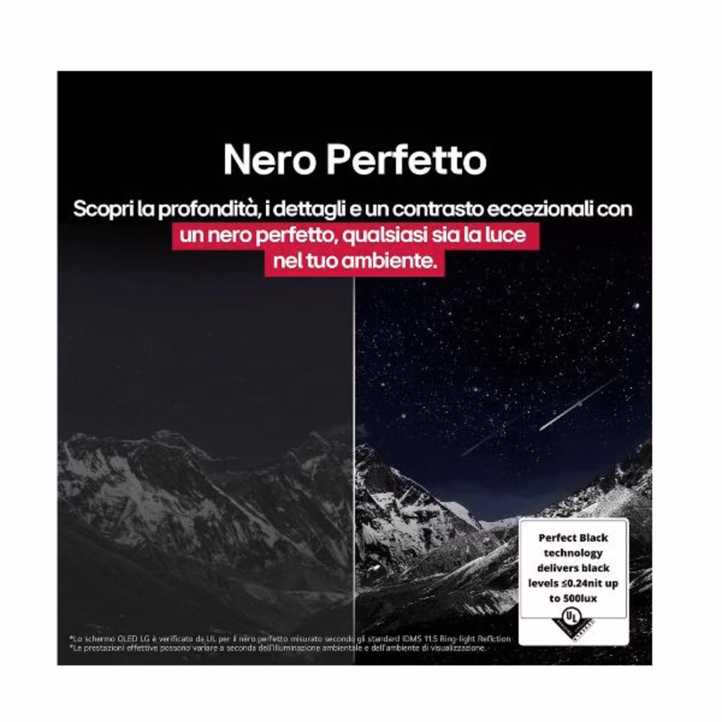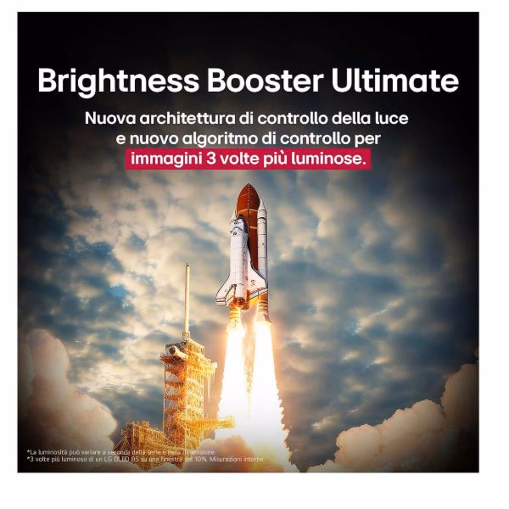 Il Brightness Booster Ultimate aumenta la luminosità dello schermo fino fino a tre volte rispetto a uno schermo LG OLED tradizionale. Queste prestazione incredibili sono rese possibili dalla tecnologia innovativa di LG, che ottimizza la gestione della luce per garantire immagini più brillanti, vivaci e nitide, anche in ambienti luminosi. Grazie a questa tecnologia avanzata, ogni dettaglio prende vita, offrendo un'esperienza visiva senza compromessi.