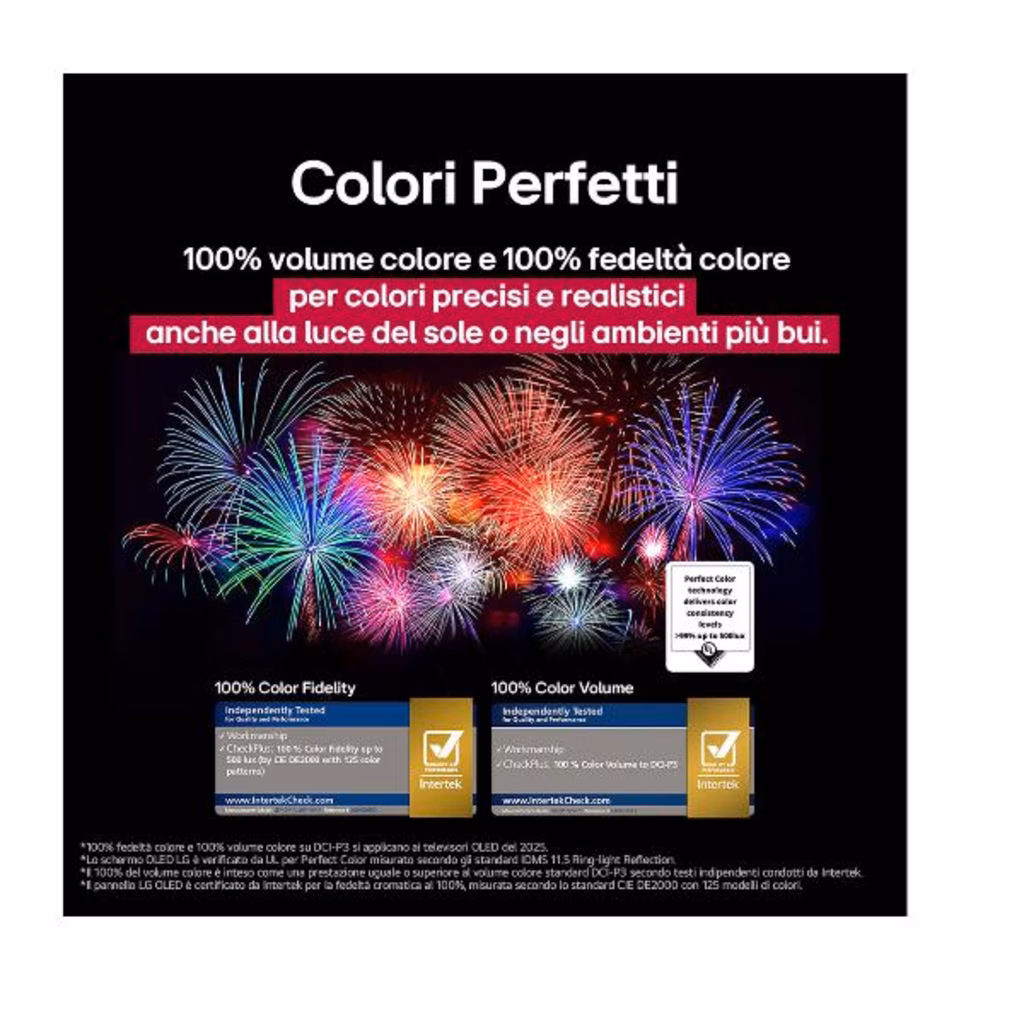 Questo TV è stato certificato da Intertek perché assicura una fedeltà cromatica al 100%, riproducendo colori realistici e autentici in ogni scenam, mantenendo intatti i dettagli originali. Inoltre, il volume colore al 100% consente di ottenere sfumature più ricche e intense, che donano profondità e vivacità, arricchendo ulteriormente l'esperienza visiva.