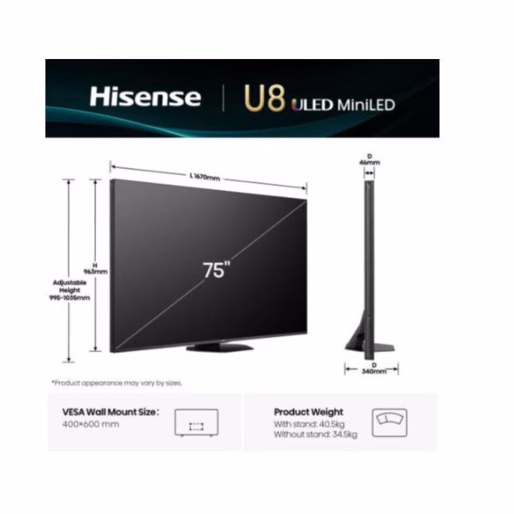75 U8Q MINI LED 4K UHD SMART VIDAA REFRESH RATE 165HZ