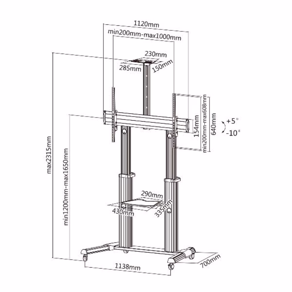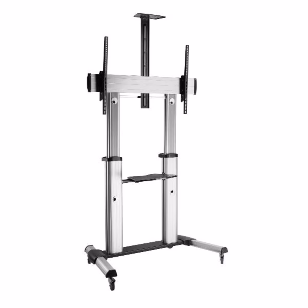 Il carrello TV equip® a display singolo con un design elegante, tecnico e funzionale per fornire una solida soluzione di presentazione per la maggior parte dei TV LED a schermo piatto LCD. Le staffe per TV a schermo piatto verticalmente consentono una regolazione dell'altezza senza sforzo per soddisfare le diverse esigenze di visione in qualsiasi momento. L'inclinazione libera consente una facile regolazione dell'angolazione e riduce l'abbagliamento da luci o finestre per ottenere un comfort visivo ottimale. La solida base fornisce una sicurezza aggiuntiva eliminando la possibilità di inciampare e garantisce prestazioni affidabili per anni di utilizzo. La gestione interna dei cavi nasconde i cavi alla vista per mantenere un aspetto ordinato. Ideale per conferenze, presentazioni pubbliche o altre presentazioni professionali.