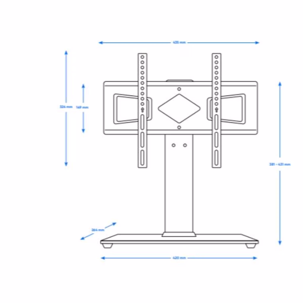 Il gancio e i pilastri di supporto sono regolabili in altezza, per permettere di posizionare il televisore al livello desiderato.
