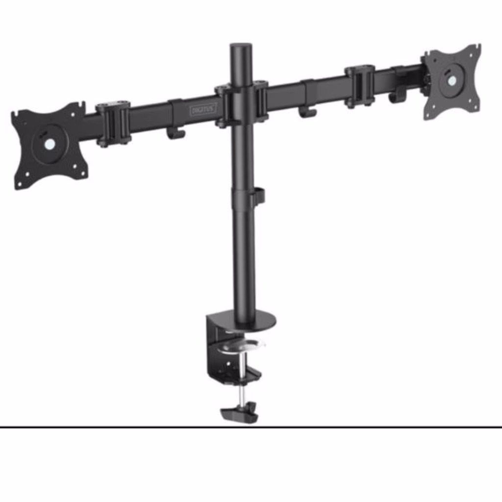 Supporto per morsetto da tavolo per doppio monitor, 15-27 ", carico massimo nero 2x8Kg, VESA max100x100Supporto universale per doppio monitor con gruppo di serraggio per monitor fino a 69 cm (27 ")Adatto universalmente per tutti i monitor LED e LCD fino a 27 "con un'opzione di montaggio conforme allo standard VESASupporto per la disposizione flessibile dei monitor sul desktopRegolazione individuale dell'altezza di 15 mm per un perfetto allineamento dei monitorSupporto universale per monitor flessibile per il posizionamento dei monitor sul desktop. Facile da ruotare e inclinare sia in orizzontale che in verticale. Regola semplicemente l'altezza di visualizzazione secondo necessità. Il supporto per monitor consente di installare monitor LED e LCD di tutte le marche. Basta notare le dimensioni VESA e i pesi dei monitor per selezionare un supporto adeguato.