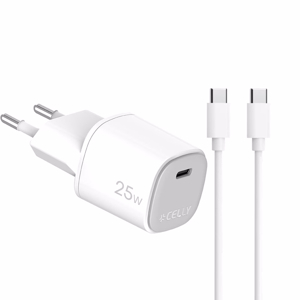 Il caricabatterie da muro UPTC da 25W, con 1 porta USB-C e cavo USB-C incluso.