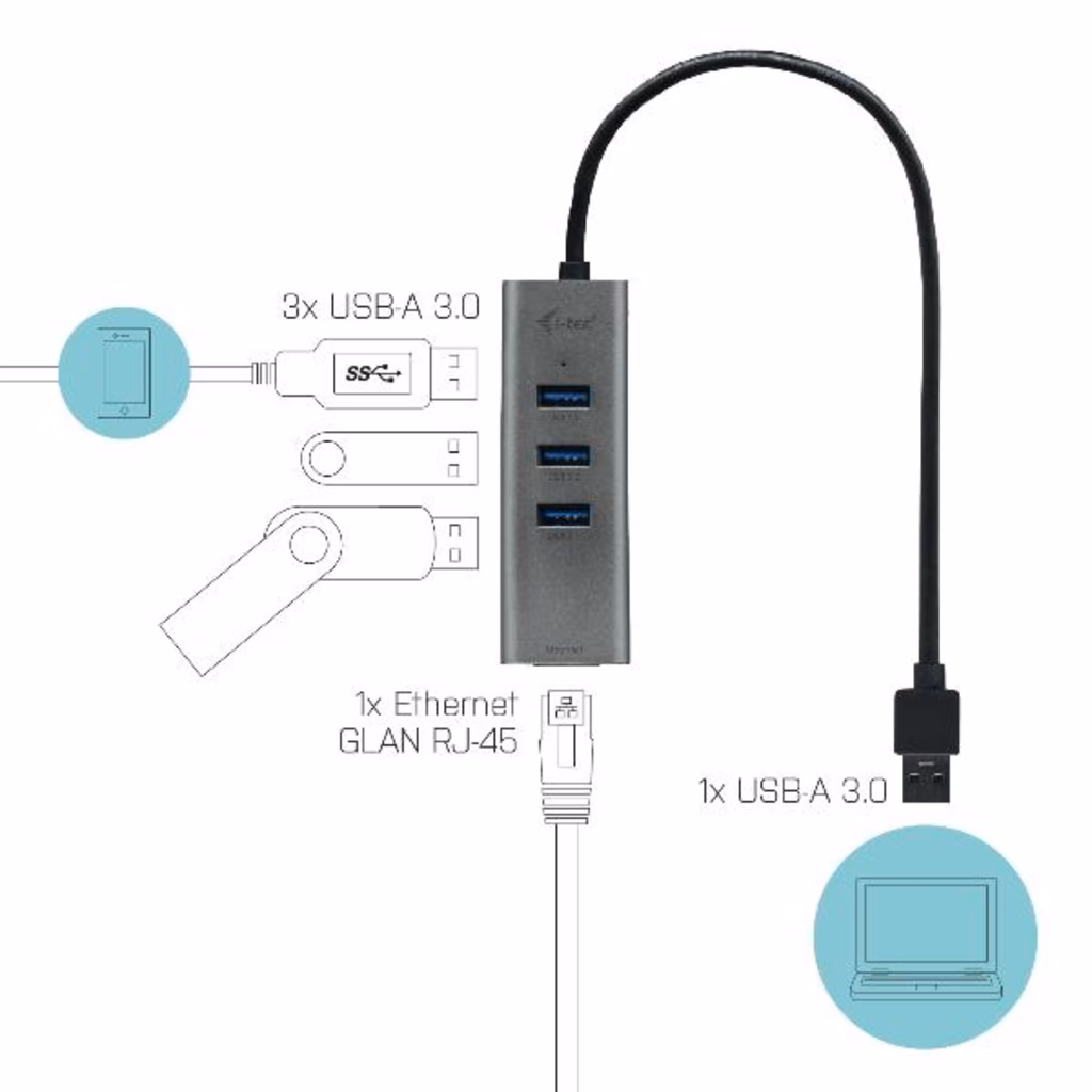 i-tec USB 3.0 Metal HUB 3 Port + Gigabit Ethernet Adapter