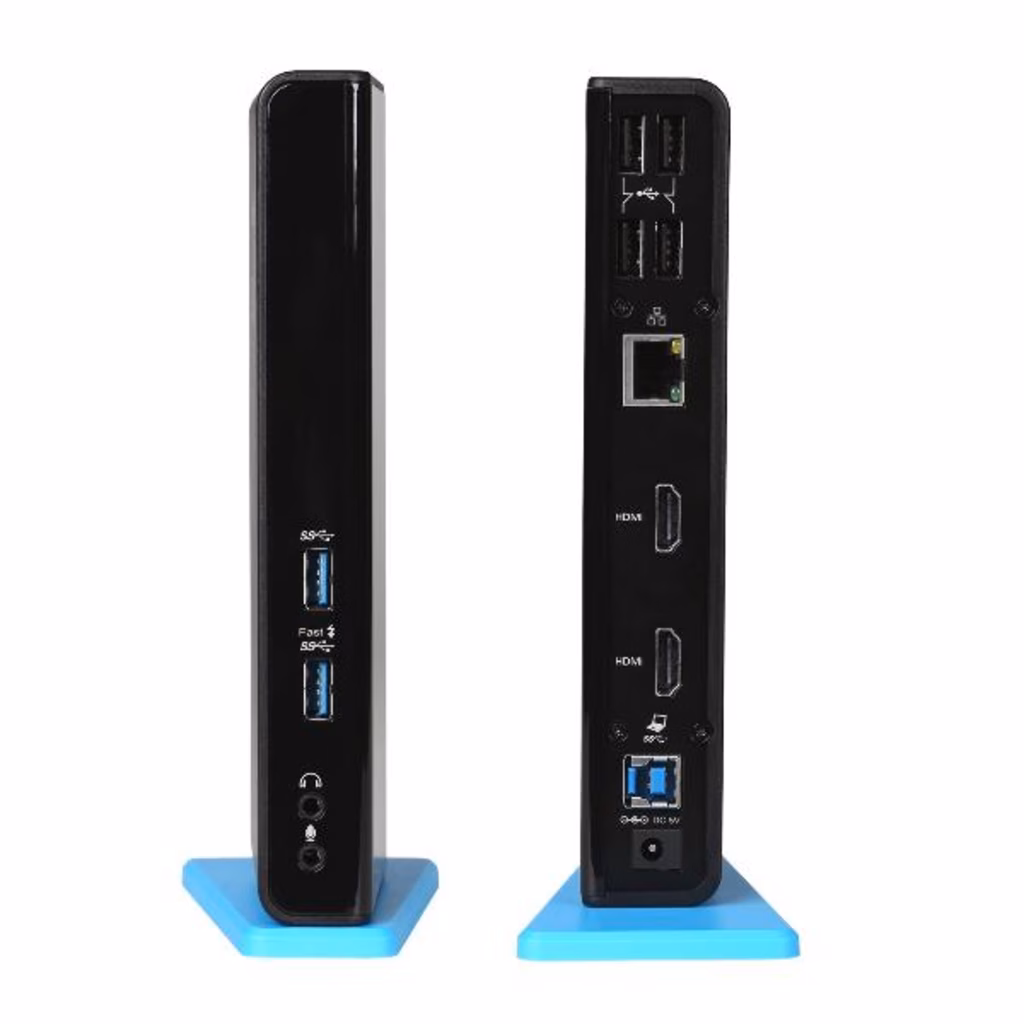 Docking station universale compatibile con tutti i marchi e modelli di notebook, viene fornita con un cavo USB 3.0 da 100 cm con adattatori integrati per USB-C e Thunderbolt 3. La stazione supporta fino a 2 monitor esterni, che si collegano grazie alle porte HDMI. 6 porte USB, connessione internet affidabile e veloce grazie alla porta LAN integrata e non manca neanche il supporto per ingresso e uscita audio.
