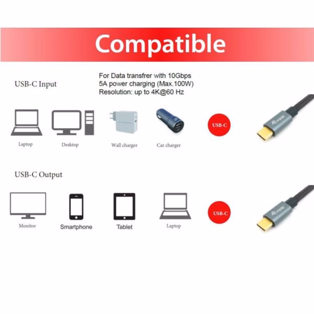 Con il cavo C to C di Equip USB 3.2 Gen 2 è possibile sperimentare una velocità di trasferimento fino a 10 Gbps, fino a 20 volte più veloce di USB 2.0 (480Mbps), 12 volte più veloce di FireWire 800 e 2 volte più veloce di USB 3.2 Gen 1 (5Gbps). Fornisce inoltre Power Delivery fino a 5A (max 100W). Ciò consente di ricaricare in modo rapido e sicuro il dispositivo USB-C e di sincronizzare foto, musica e dati con il dispositivo USB-C esistente. L'uso di materiali ad alta elasticità rende questo cavo USB più facile da cablare e collegare. La rete di cotone intrecciata di qualità superiore conferisce una sensazione di morbidezza e offre una protezione forte, flessibile e resistente agli agenti atmosferici. Facile da collegare e scollegare, si collega saldamente per fornire segnali stabili per le vostre esigenze.