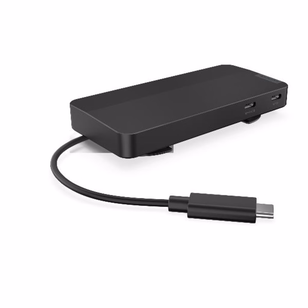 Il dock da viaggio Lenovo USB-C con doppio schermo è un compagno essenziale per il professionista moderno che lavora da remoto. Questa dinamo compatta supporta due schermi 4K e alimenta il tuo not Webook USB-C con un PD a 100W (con un adattatore USB-C aggiuntivo da 135 W).