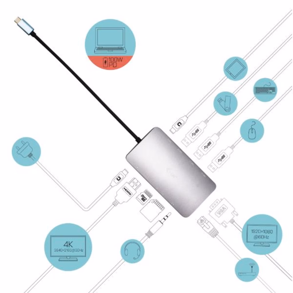 USB-C hdmi+vga+lan+pd100w+charg112w