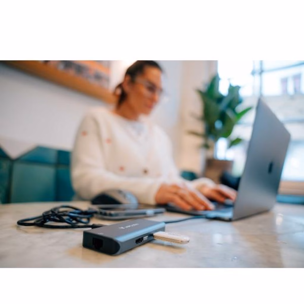 Converte senza problemi una singola porta USB-C® in sei porte diverse, tra cui una RJ45 Ethernet, una HDMI, una USB-C PD 3.0 e più porte USB-A 3.2 Gen 1. Questo hub è progettato per gli utenti che necessitano di un accesso stabile alla rete e di ampie opzioni di connettività.