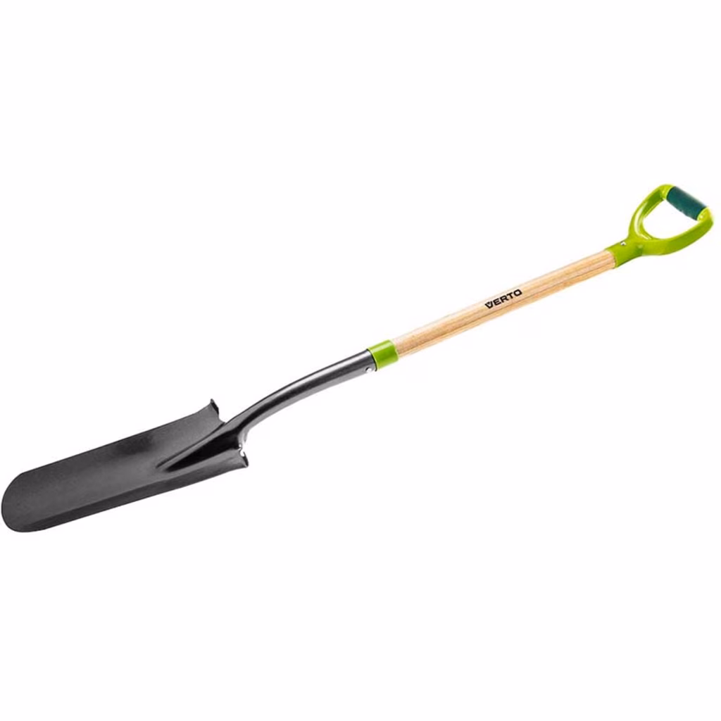 Vanga in acciaio per piantumare - dritta rivettata - manico in legno - impugnatura in plastica - misura 1280 mm