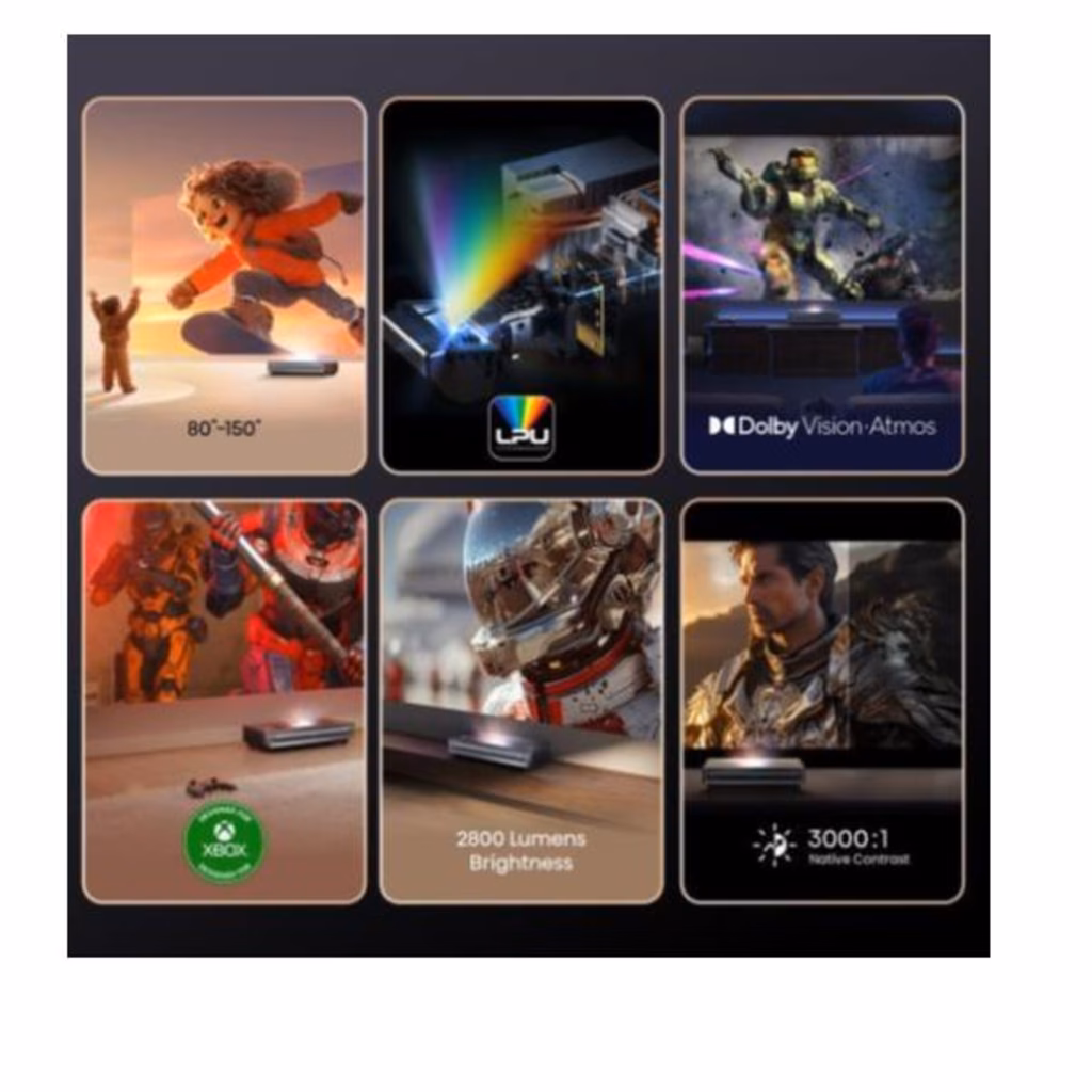 Grazie alla tecnologia a focale ultra corta, crea immagini vivide e realistiche, da 80 pollici fino a un gigantesco 150 pollici. Basta posizionare la console alla giusta distanza dalla parete per ottenere immagini delle dimensioni perfette per la stanza, anche in uno spazio ridotto.