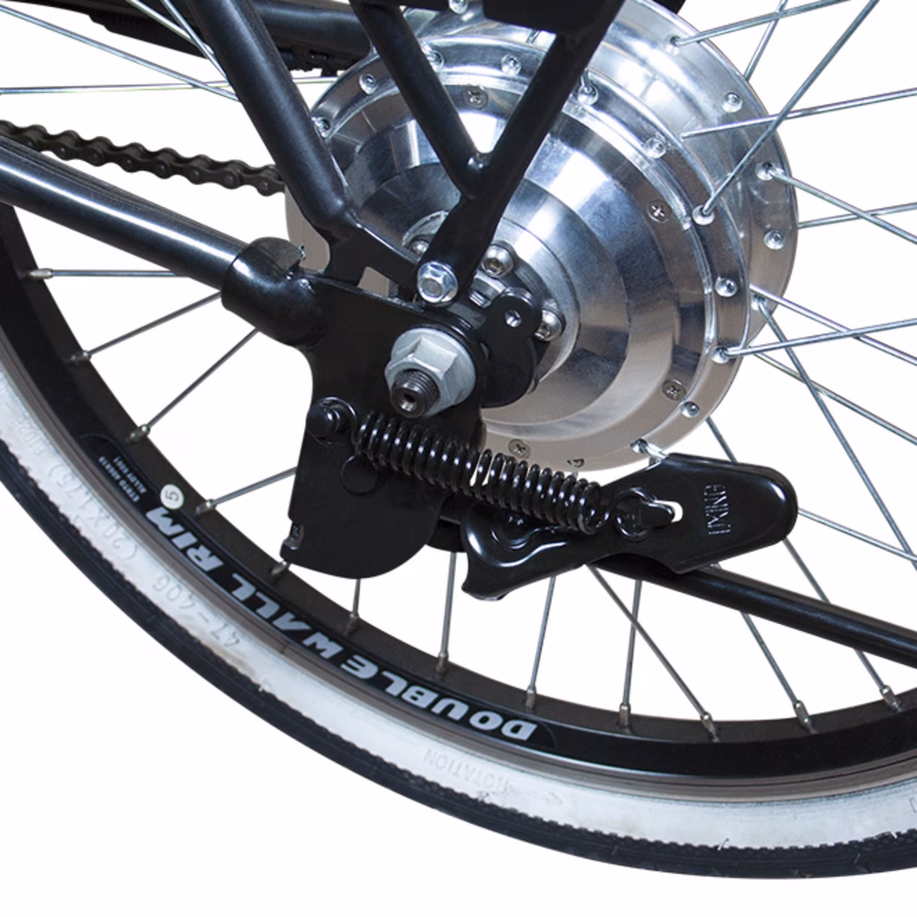Telaio: Struttura pieghevole in acciaio - Motore: 250W posteriore - Batteria: 7.800mAh - Voltaggio: 24V Freni: V-Brake - Carico: 100kg max - Durata: 25-40km max - Ruote: 20" - Velocità: 25km/h max - Cambio: Singolo - Cavalletto:- Peso: 18.8kg - Dimensioni: LxPxH cm 147x60x100 - Colore: Bianco