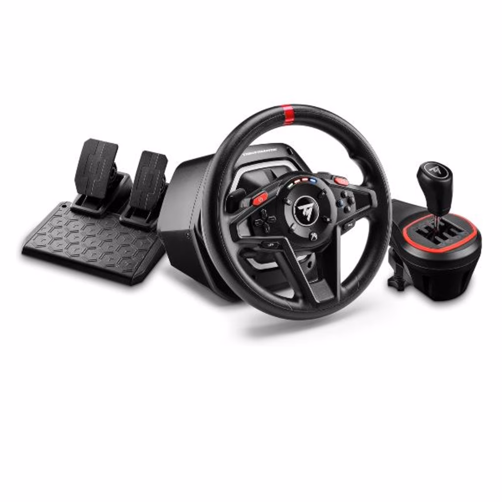 Il T128 Shifter Pack è composto dal volante T128 e dal cambio TH8S Shifter Add-On, per un esperienza di guida coinvolgente e versatile. La sua placca del cambio con schema ad H (con 7 rapporti oltre alla retromarcia) si adatta facilmente a tutti i tipi di giochi e veicoli (racing, trucking, farming).