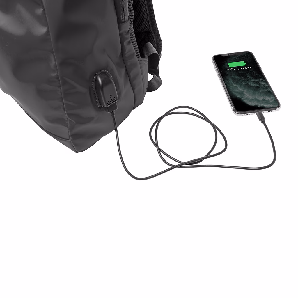 Lo zaino è equipaggiato di porta USB esterna con cavo integrato per collegare il proprio powerbank e ricaricare lo smartphone anche mentre sei in movimento.