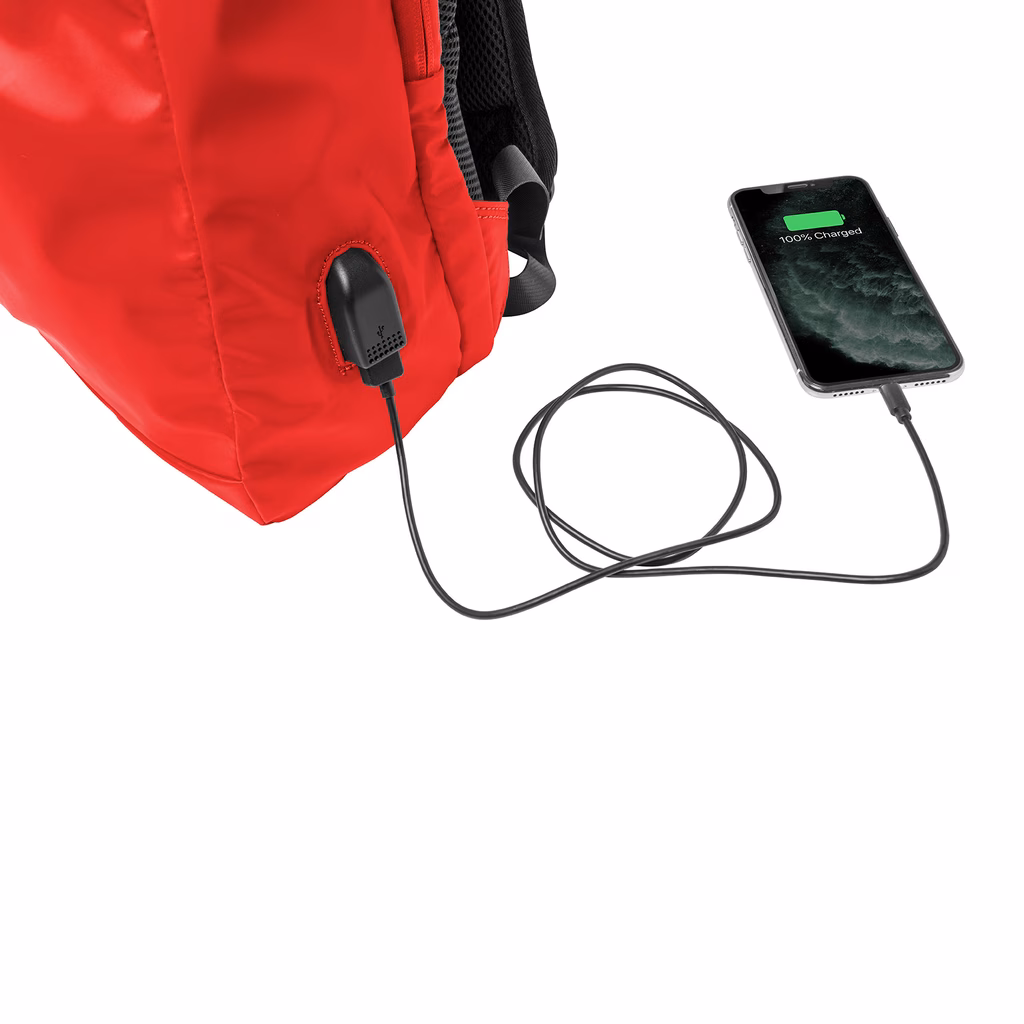 Lo zaino è equipaggiato di porta USB esterna con cavo integrato per collegare il proprio powerbank e ricaricare lo smartphone anche mentre sei in movimento.