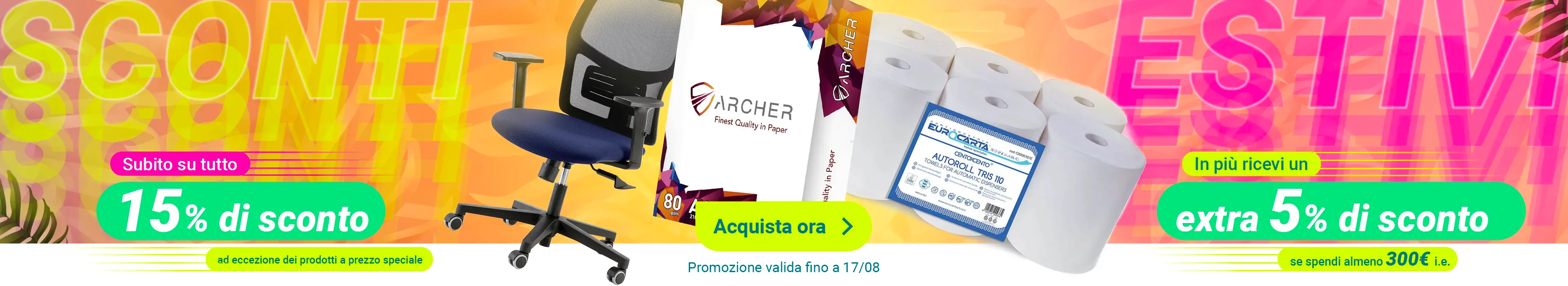 La navigazione sul nostro sito è intuitiva e veloce: in pochi passaggi potrete selezionare i prodotti necessari e completare l’ordine con facilità. La piattaforma è pensata per agevolare il processo di acquisto e, con l’ingrosso prodotti per ufficio, permette di effettuare ordini voluminosi senza mai dover rinunciare alla qualità.