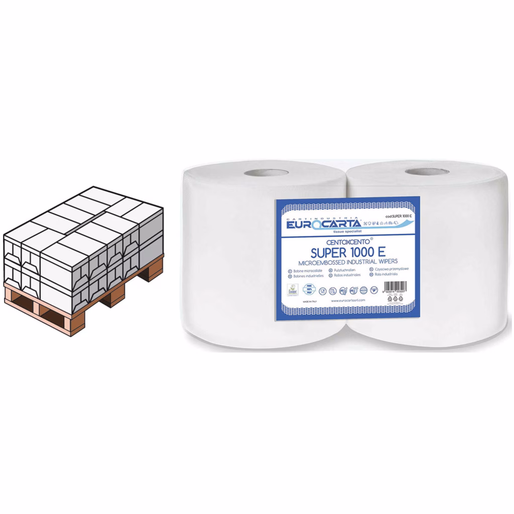 Mezzo pallet rotolo industriale EUROCARTA SUPER 1000 E2 veli 495 strappi metri 109