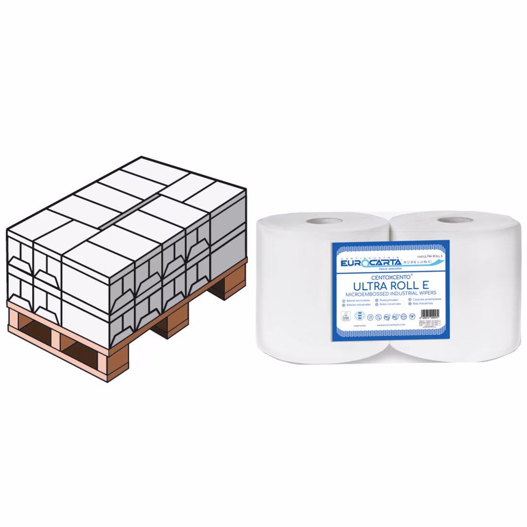 Mezzo pallet rotolo industriale EUROCARTA ULTRA ROLL 2 veli 495 strappi metri 110