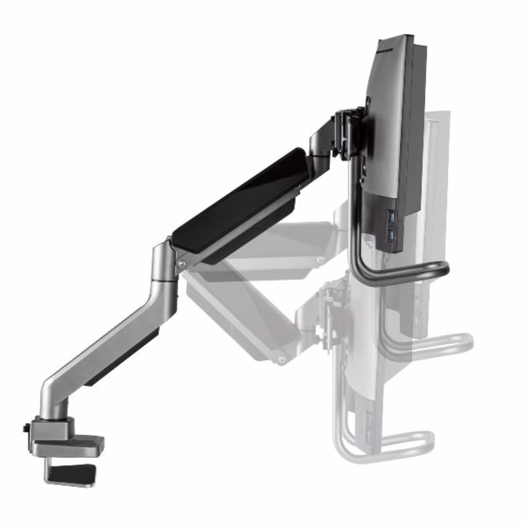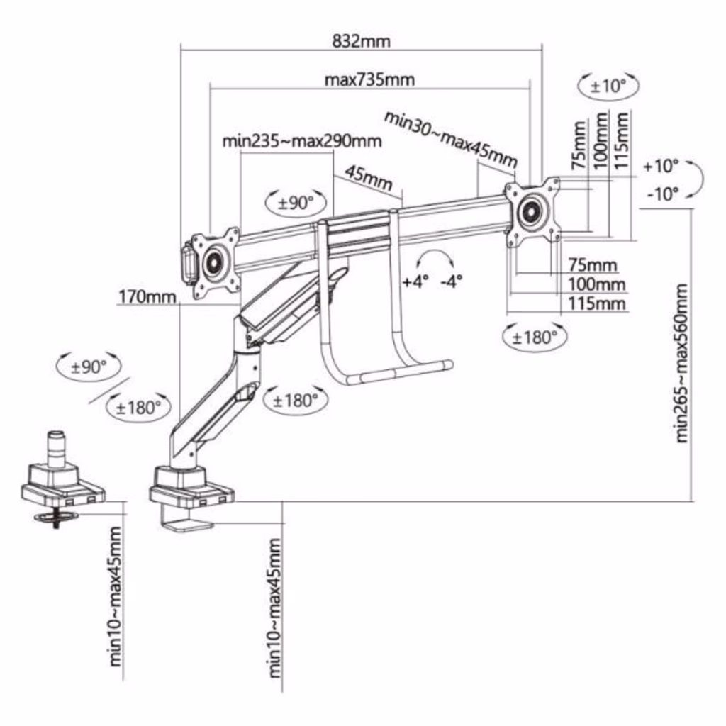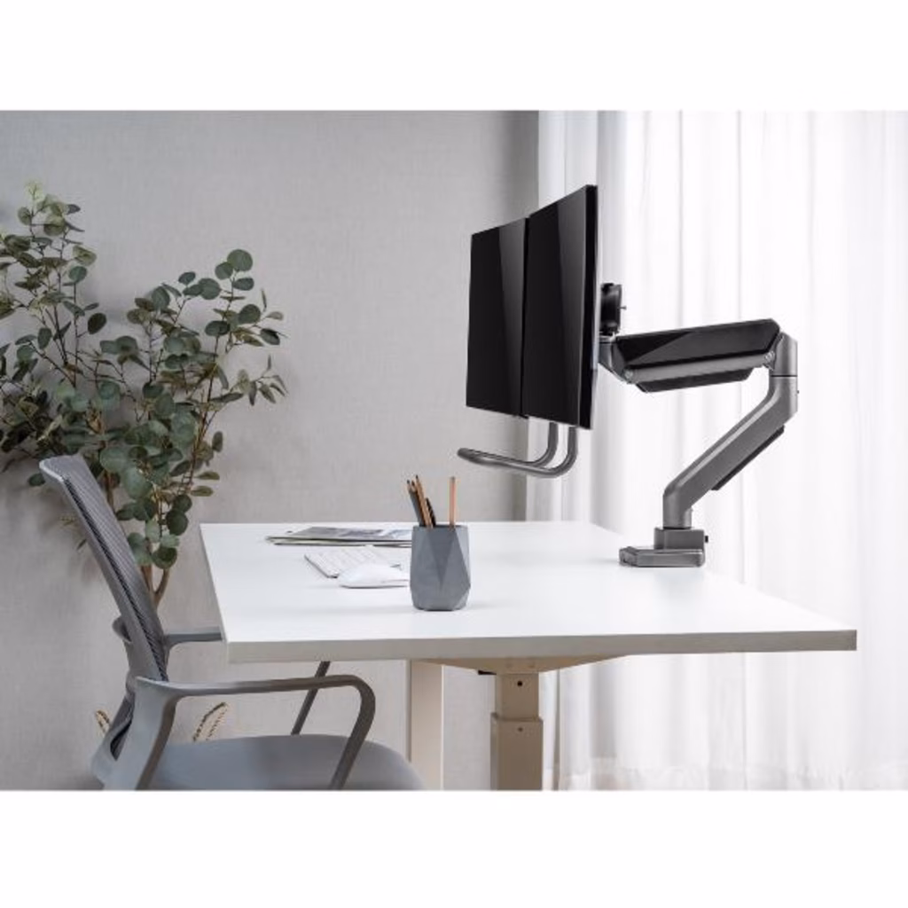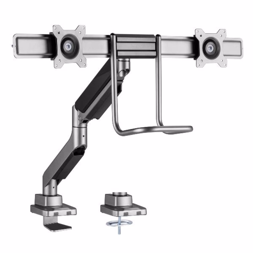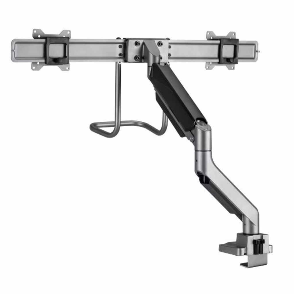 Con una struttura robusta e durevole, questa staffa di montaggio assicura stabilità e sicurezza ai monitor. Il design a doppio braccio consente il movimento indipendente di ciascun monitor, offrendo angoli di visione personalizzabili e un posizionamento ergonomico ottimale. Questa caratteristica è particolarmente utile per il multitasking o per gli ambienti di lavoro collaborativi.